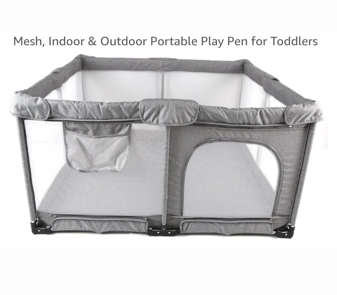 Selling a portable play pen perfect for toddlers! It's designed for both indoor and outdoor use. The mesh sides allow for good visibility and airflow, so your little one can play safely and comfortably.