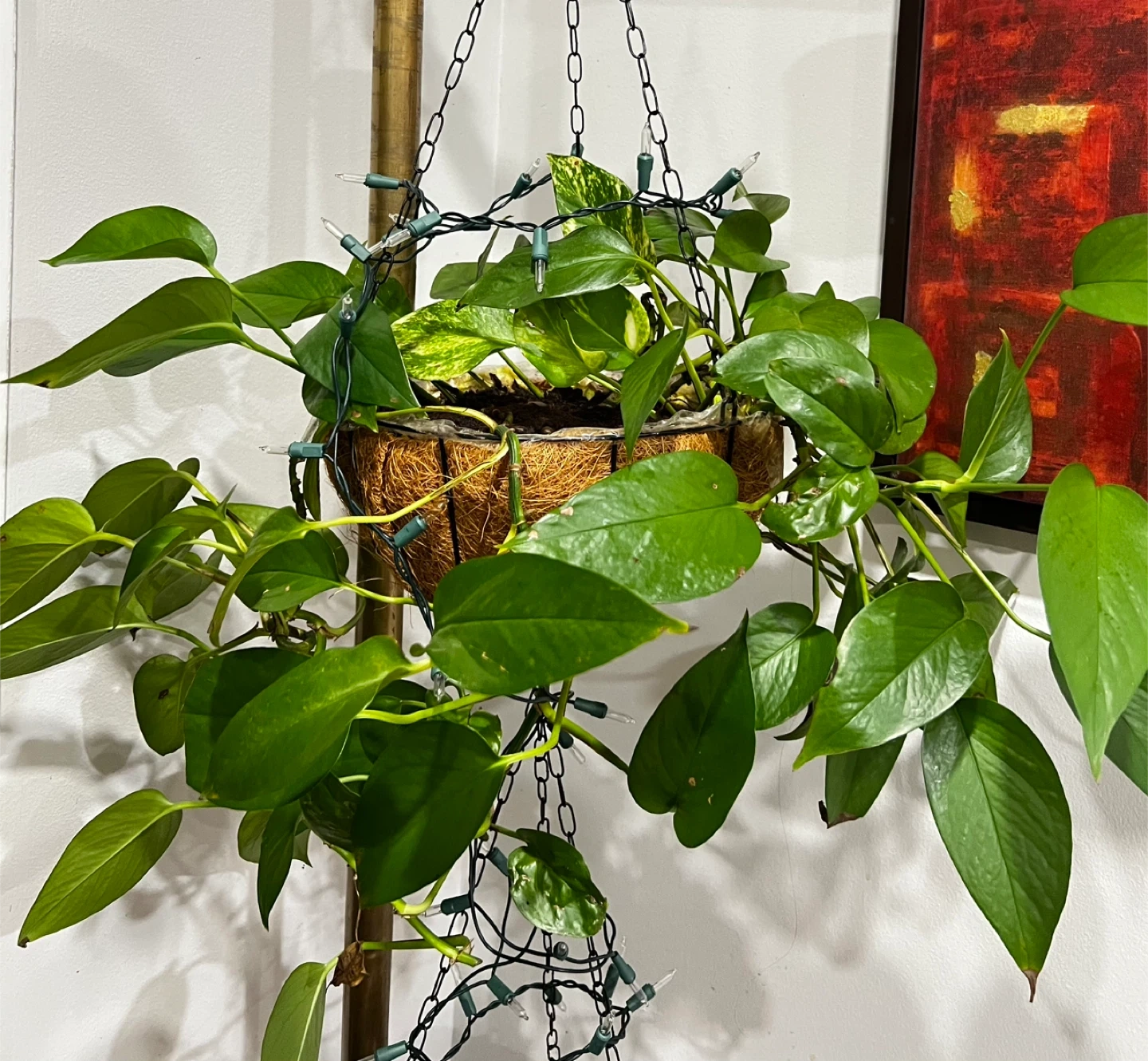 ๐ฅI'm selling a lovely pothos plant in a hanging basket! It comes with some cute string lights to add a little sparkle to your space. It's perfect for adding a touch of greenery to your home. ๐ฅ Pick up only.