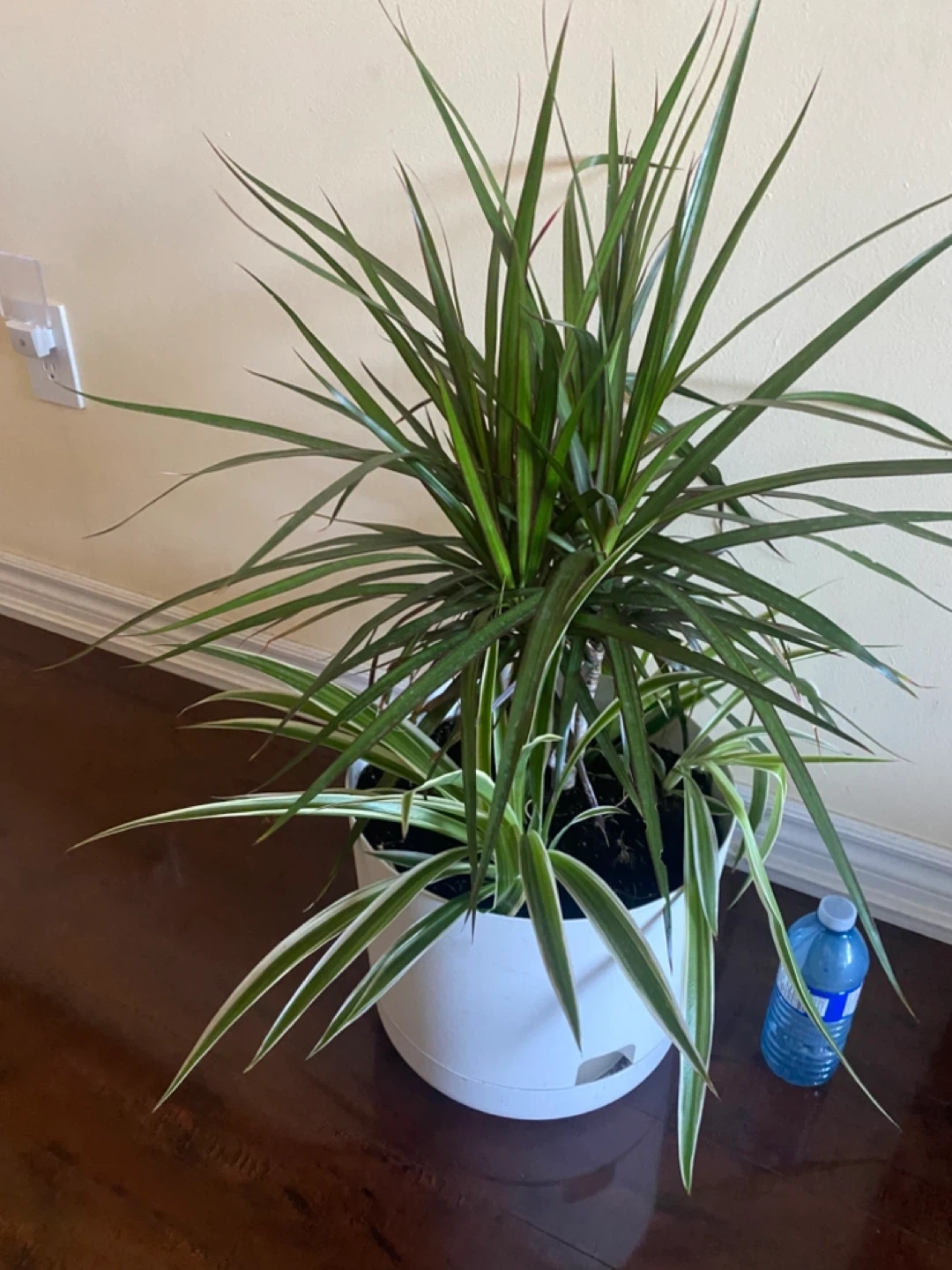 Selling a healthy Dracaena Marginata plant in a white pot with spider plants,It's a beautiful addition to any home or office space. This plant is easy to care for and adds a touch of greenery to your decor plus air purification.