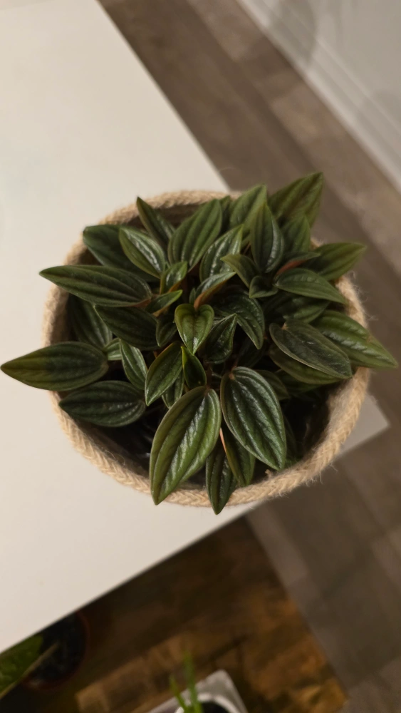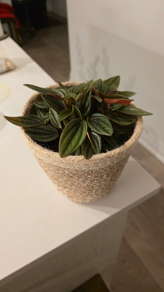 I'm selling a healthy peperomia plant in a cute woven pot! It's a lovely plant, easy to care for and adds a touch of green to any space. Nothing is wrong with it, just making some room for my new plants. Pot included.