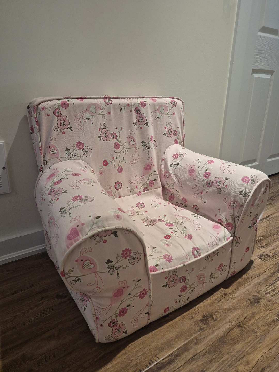 A cute armchair for kids with a lovely floral pattern! It's in great condition and perfect for a little one's room or play area