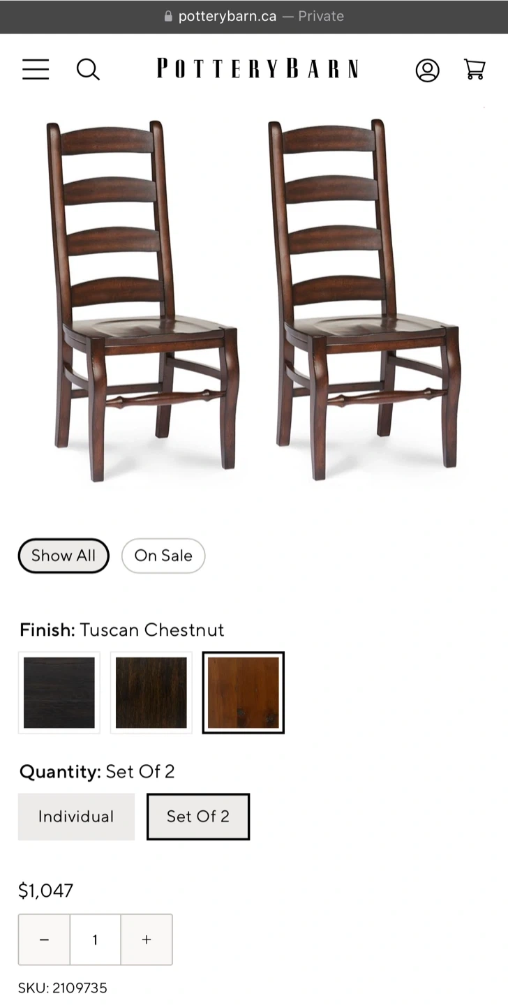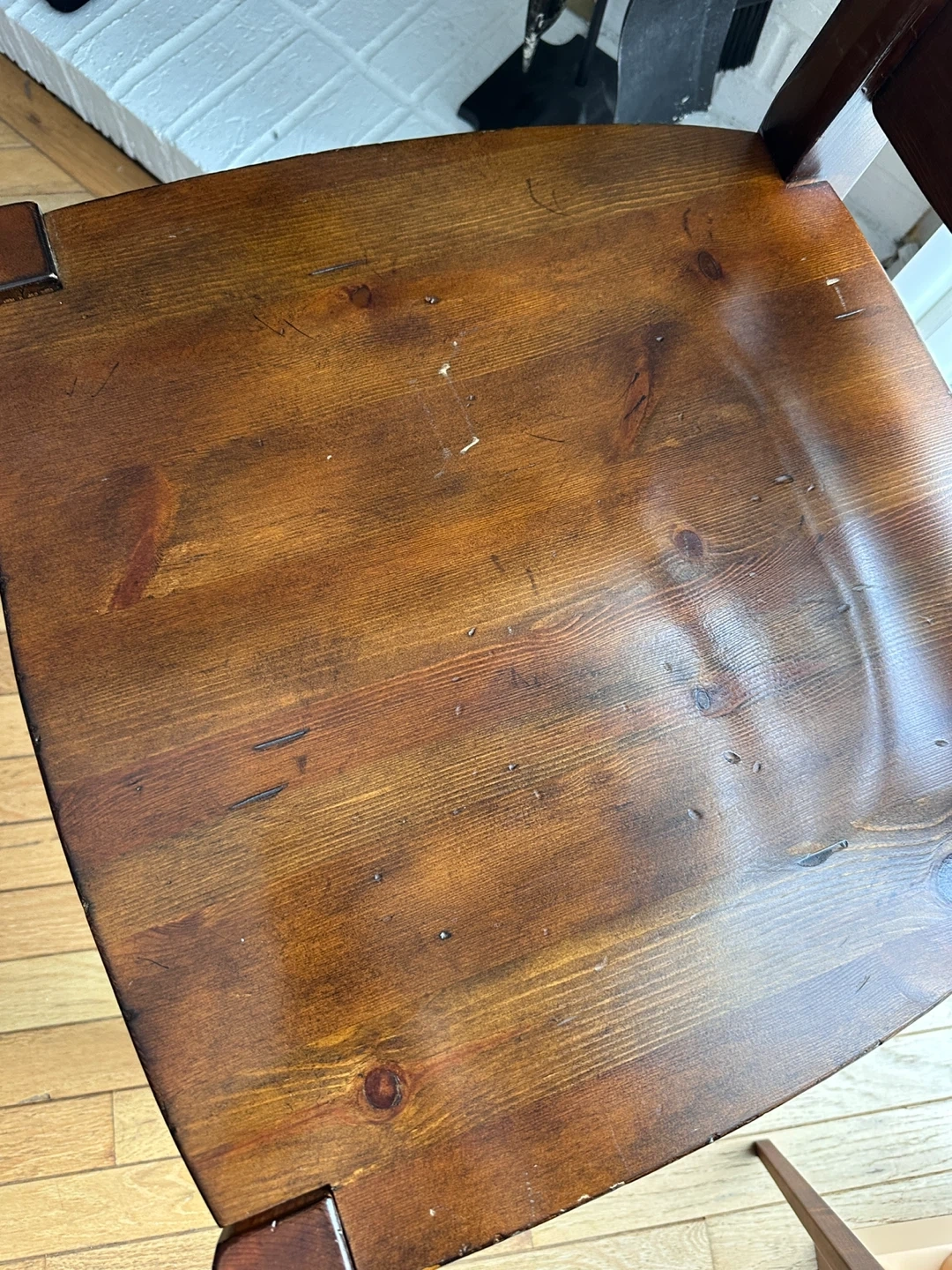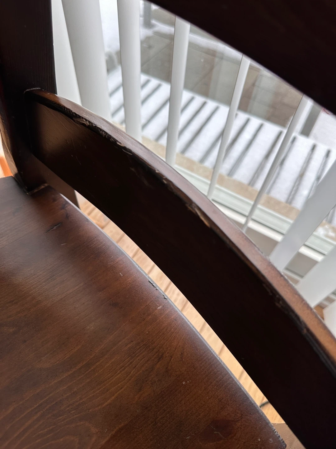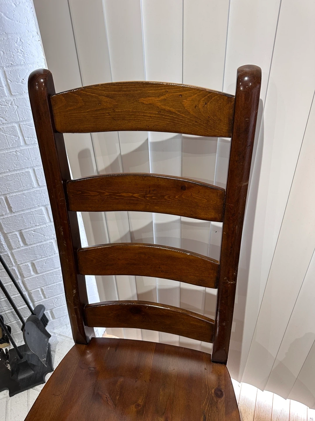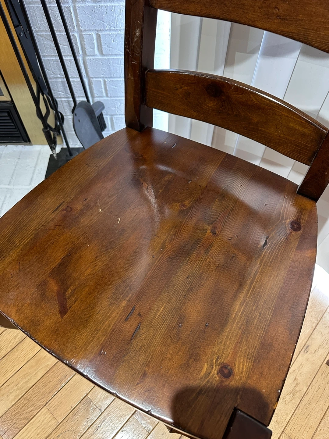 Selling a set of two wooden dining chairs. They have a classic design and are in good condition. Perfect for adding a touch of warmth to your dining space! Table not included.