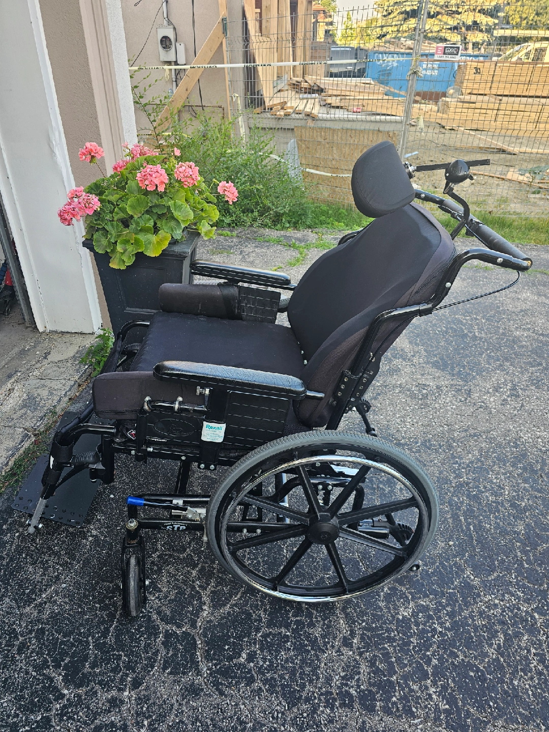 Selling a tilting Power Plus wheelchair in good condition. It has a headrest and comfortable armrests. Perfect for anyone needing mobility assistance. Feel free to ask any questions!