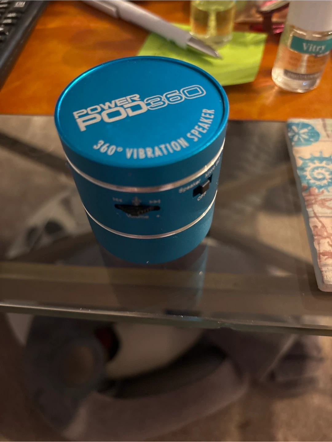 Selling a Power Pod 360 Vibration Speaker in blue! It's a compact and portable speaker that delivers 360° sound. Perfect for on-the-go listening