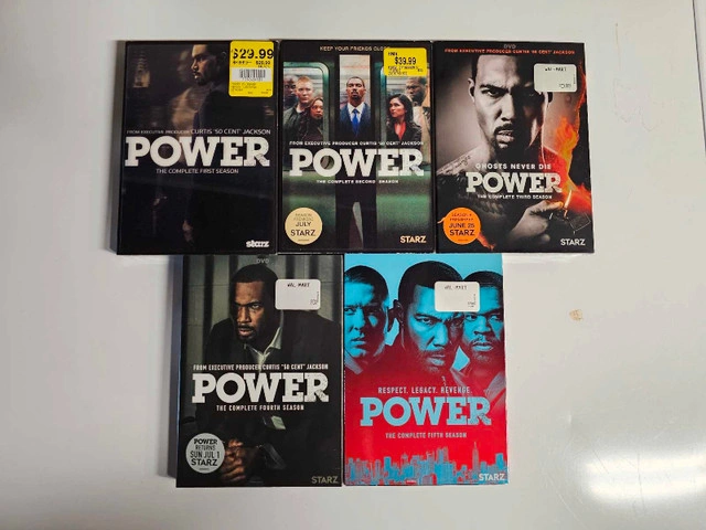Season's 1 thru 5 of Power on DVD, brand new still sealed, all with slip covers. $15 each or take all for $50. Pickup is in Pickering (West Shore Blvd).