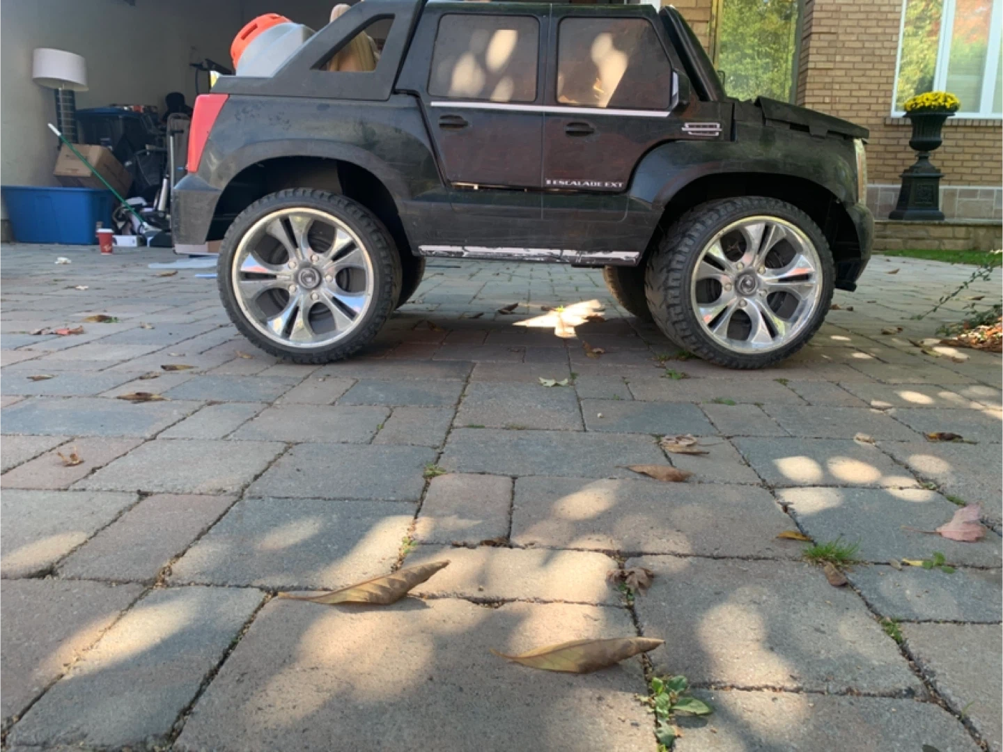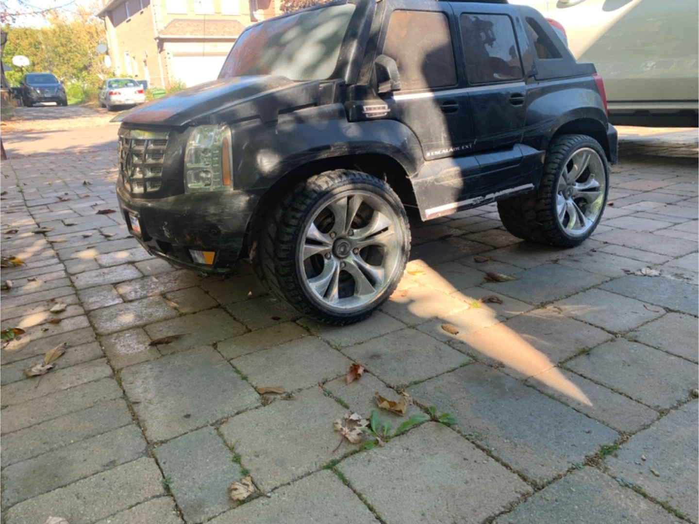 Selling a Power Wheels Cadillac Escalade ride-on toy car. It shows signs of wear and use, but still has lots of fun left to give! Perfect for your little one to cruise around in. As is has battery and works but missing a charger