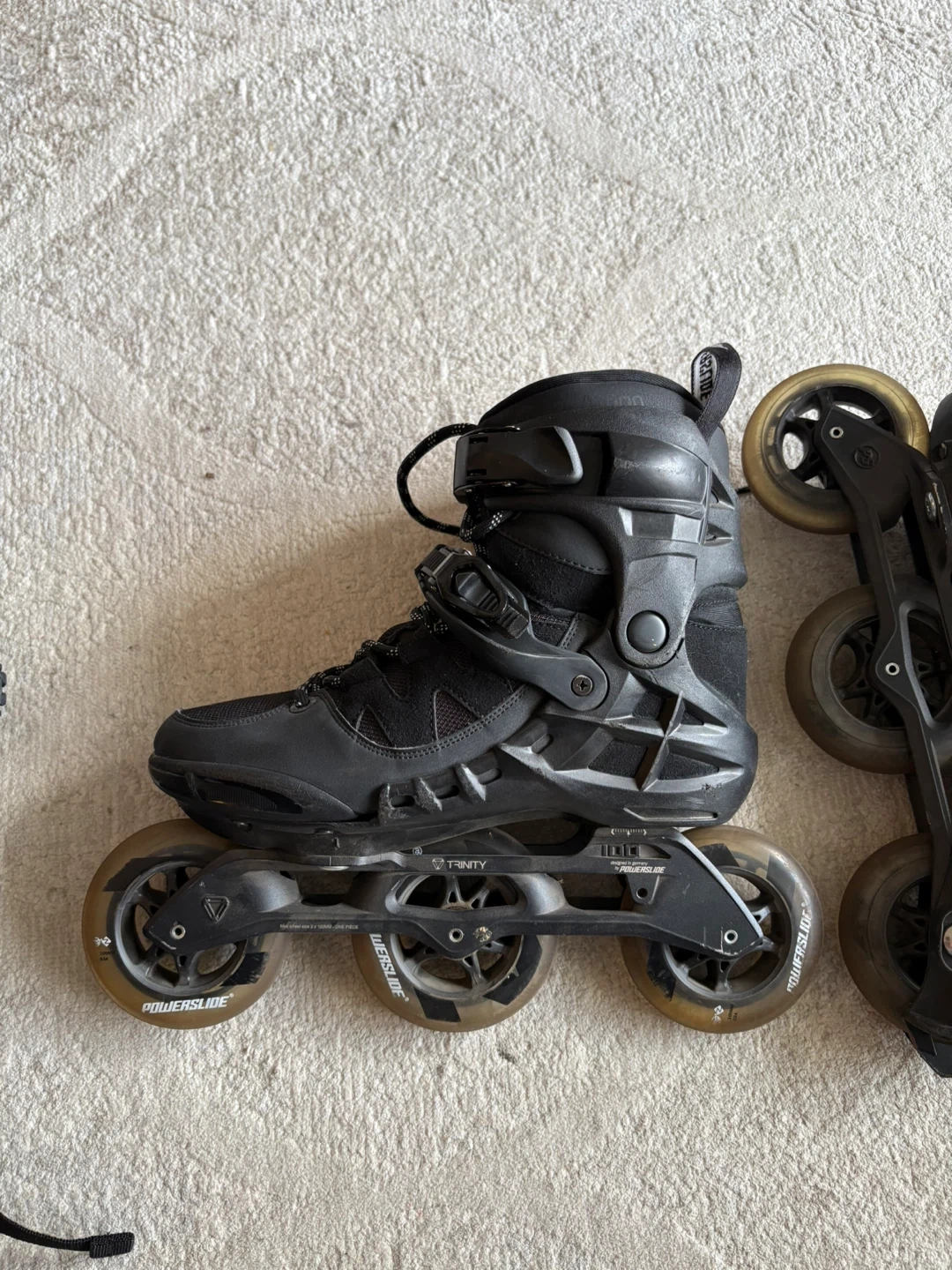 Selling a pair of Powerslide inline skates in great condition! They're black and appear to be around a US size 9. Perfect for cruising around the city or hitting the skate park 100mm 83A