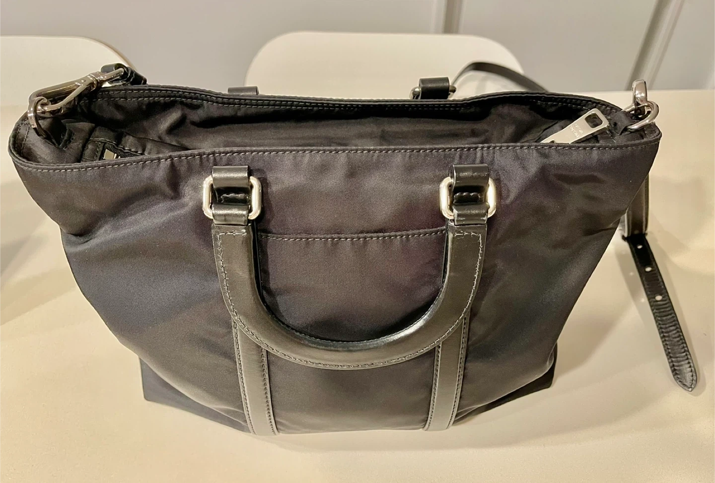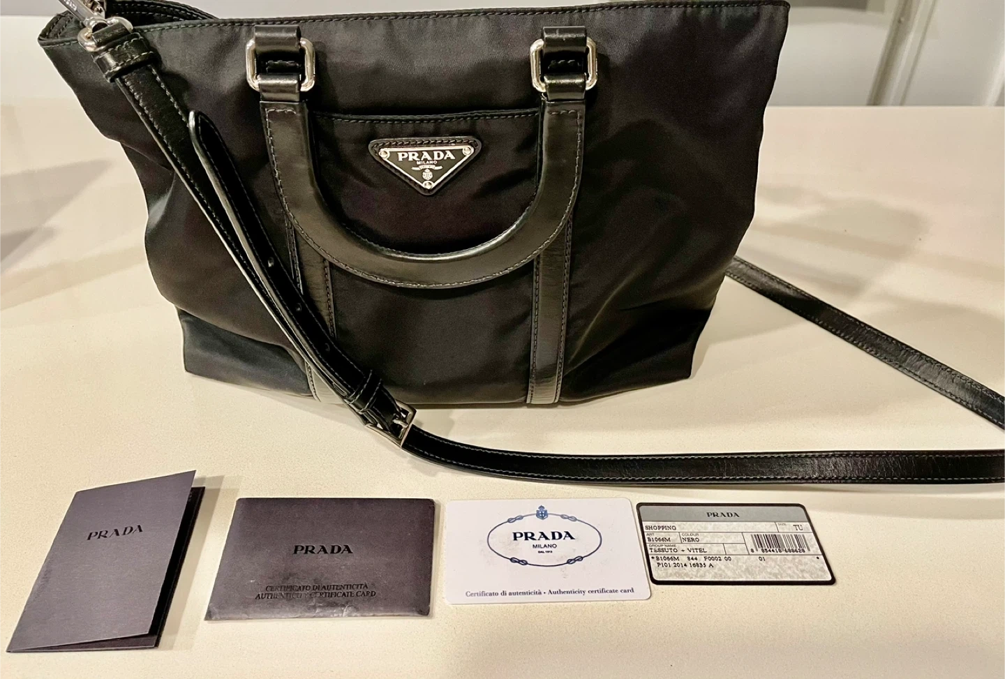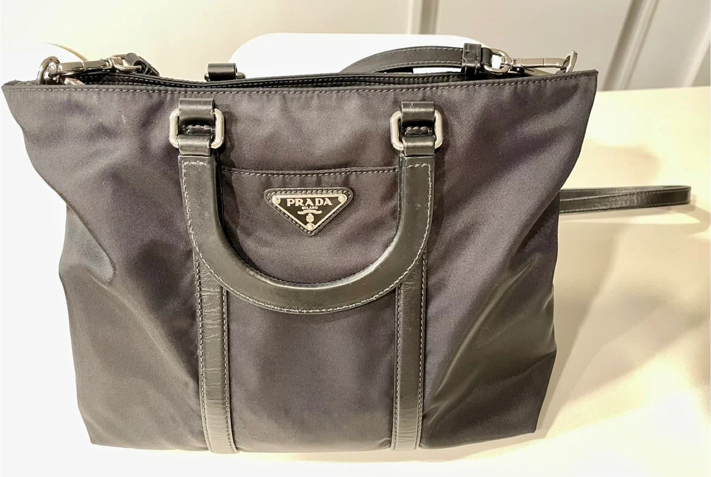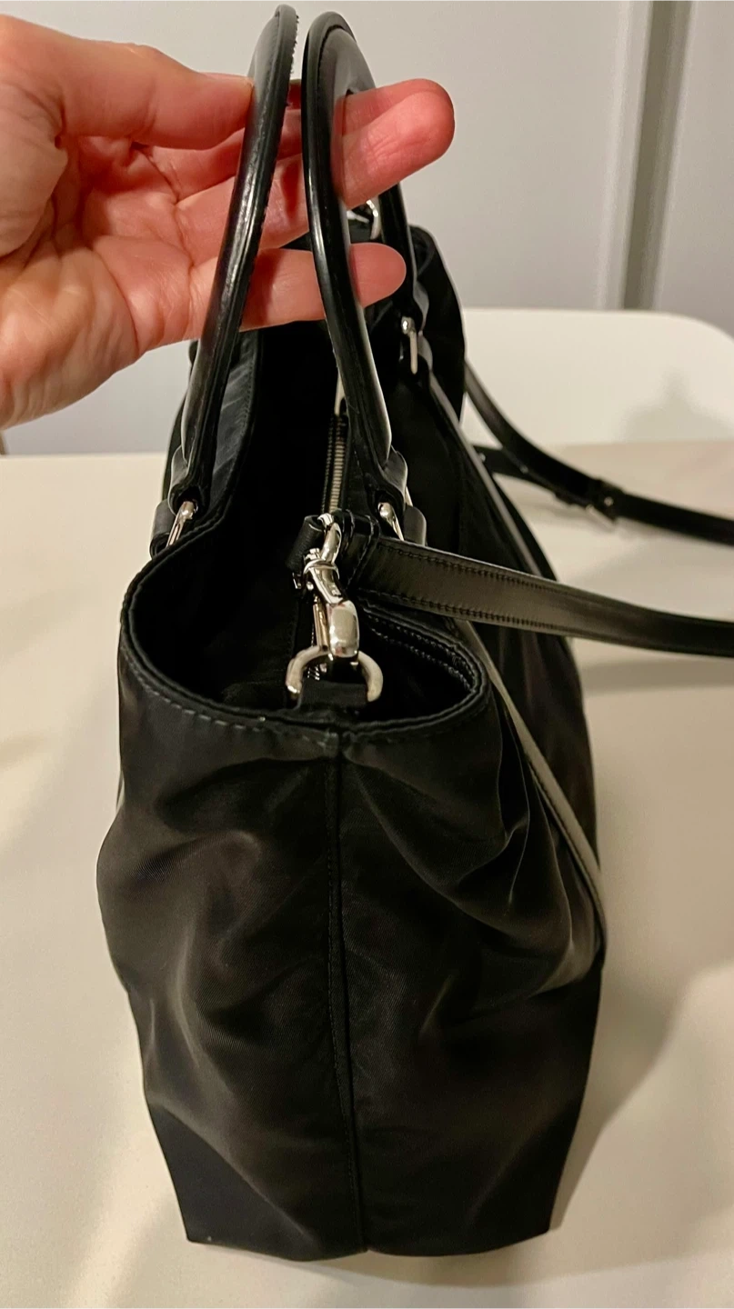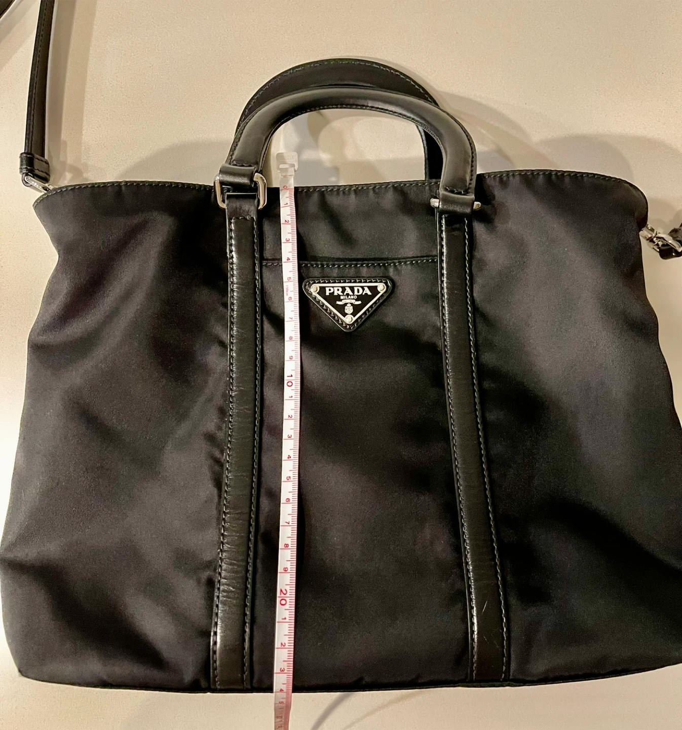 π Prada Black Nylon Tote and Cross Body Bag_Authentic π Selling a stylish Prada tote bag! It's in great condition and perfect for everyday use. The bag is made of durable black nylon and features leather handles. It's a classic and versatile piece that will complement any outfit. Can be carried by hand, on the shoulder, on the side, or cross body, with many variations, very convenient and practical. Retail price : CAD $3,500