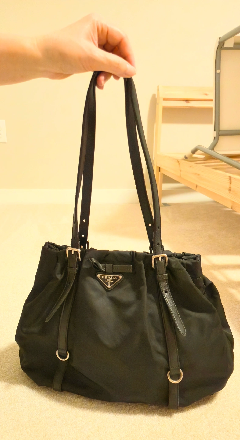 Stylish Prada Shoulder Bag. It's perfect for everyday use and is in great condition! The bag features the classic Prada logo and has a spacious interior.