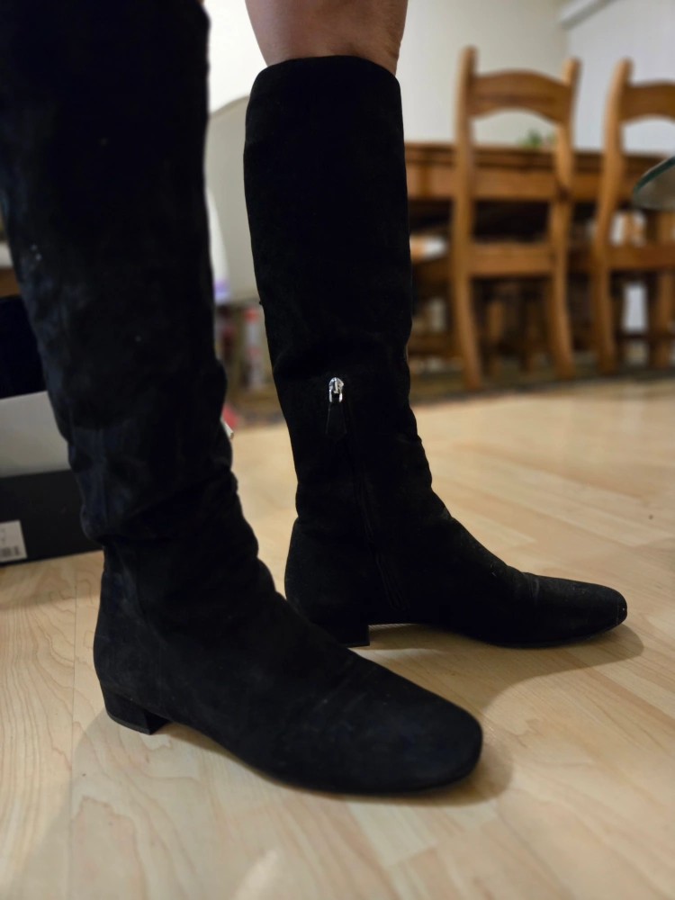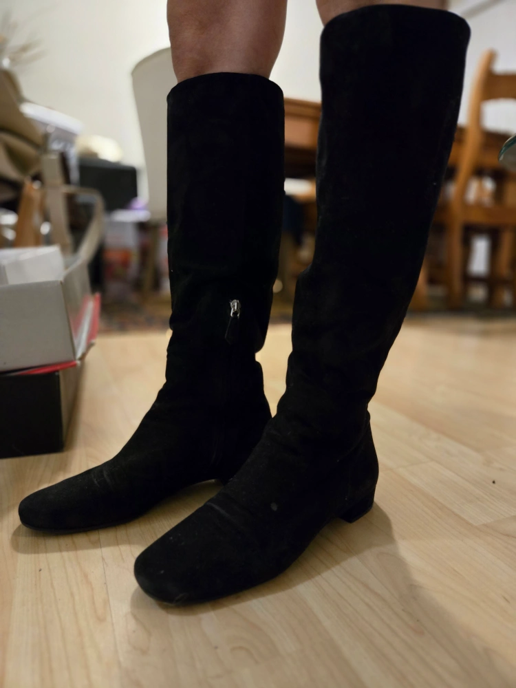 Selling a pair of Prada knee-high boots in size 7. They are black suede and come with the original box. Originally bought for $1105 at Holt Renfrew Reason of Selling: I am moving to new place. Only available for pick up.