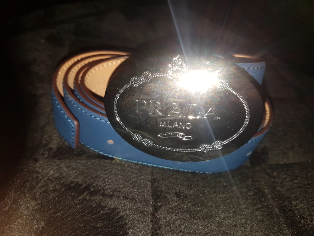 Selling a stylish Prada Milano belt in a beautiful blue colour. The belt features a distinctive silver-tone buckle with the Prada logo. It's in great condition and would be a fantastic addition to any wardrobe! Retails for $660, lowest I can go is $375