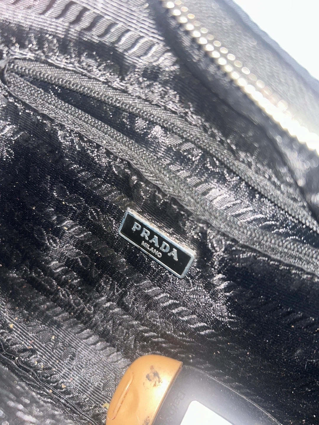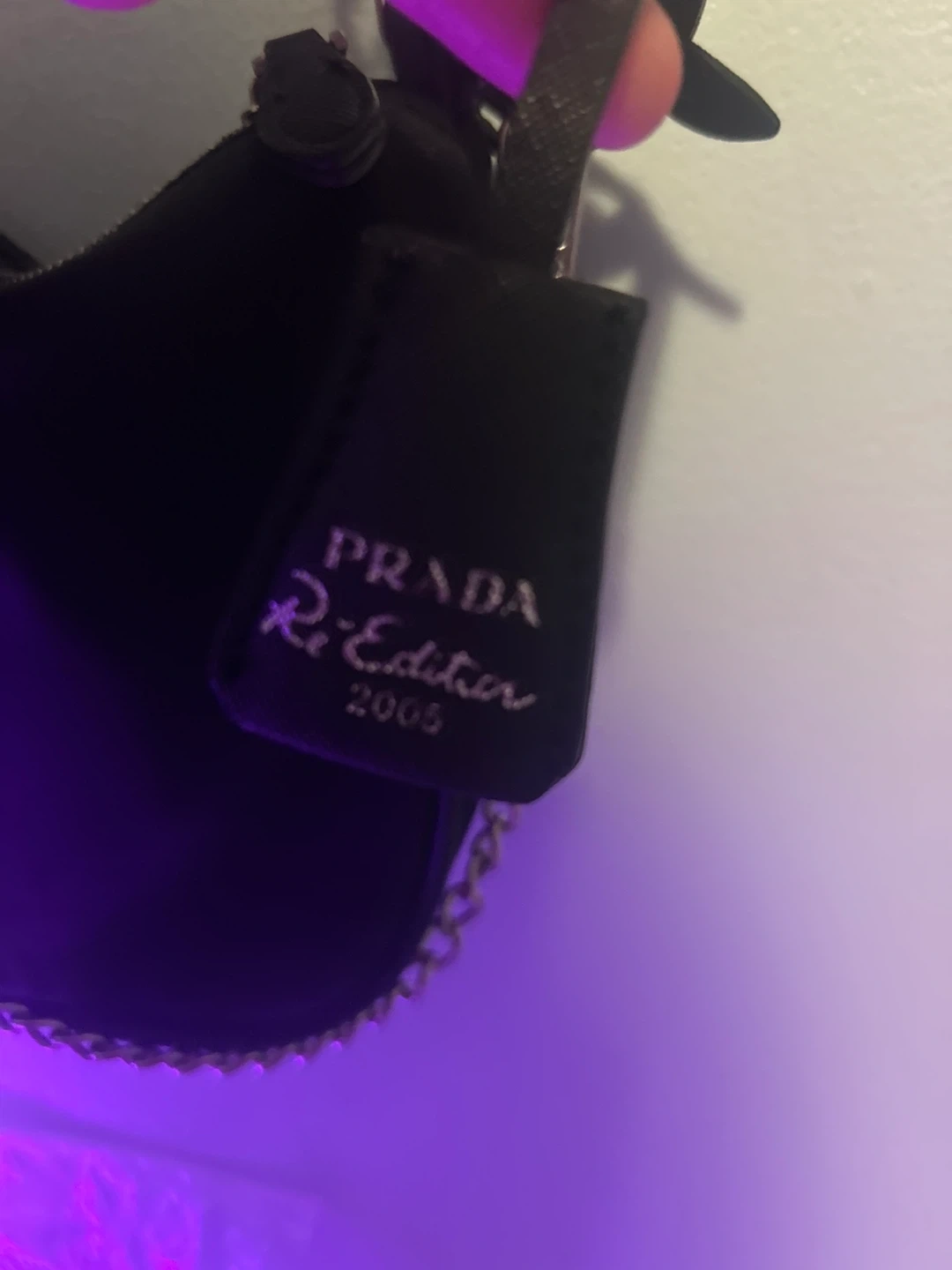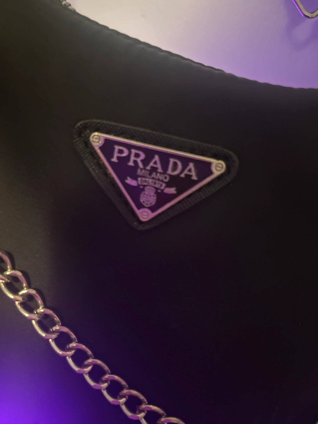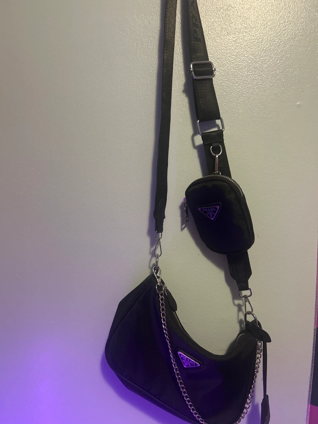 Selling a stylish Prada Re-Edition 2005 nylon crossbody bag in black. It's in great condition and features a detachable pouch and chain detail. Perfect for adding a touch of luxury to your everyday look!