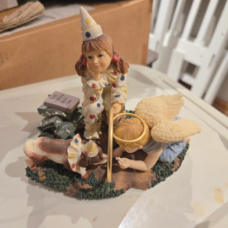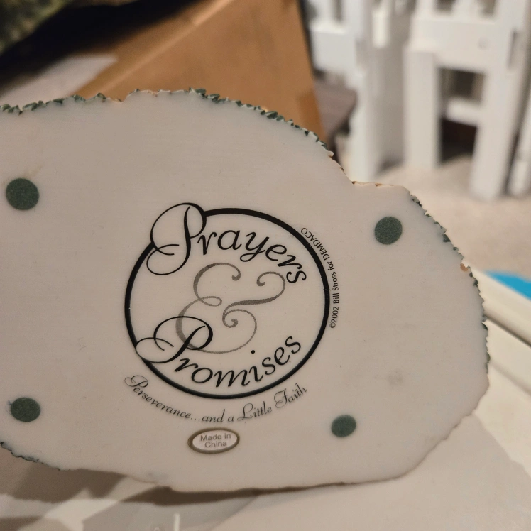 This is a charming Prayers & Promises figurine by DEMDACO. It features a sweet scene with detailed characters. "Perseverance... and a Little Faith" is written on the base. It's in great shape and would make a lovely addition to any collection