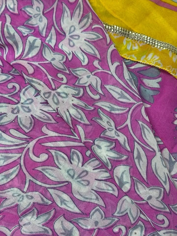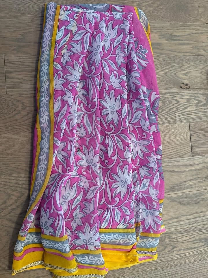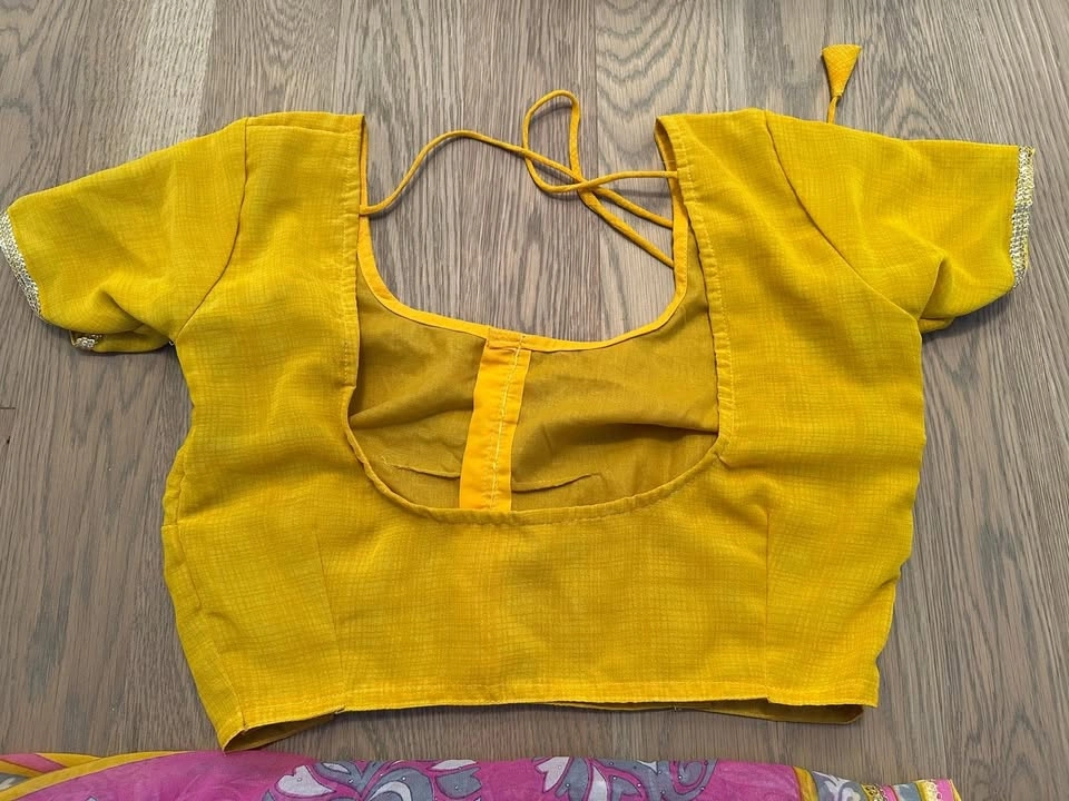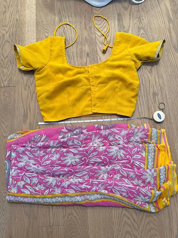Saree: 44” length Top: 14” length and 13” width Size: XS Pre-pleated There is room to open at the top of the blouse.