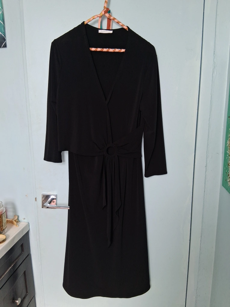 Selling a lovely black dress from Precis Petite! It's a size 14 and made of 95% polyester and 5% elastane, so it's got a nice comfortable stretch to it. Perfect for any occasion!
