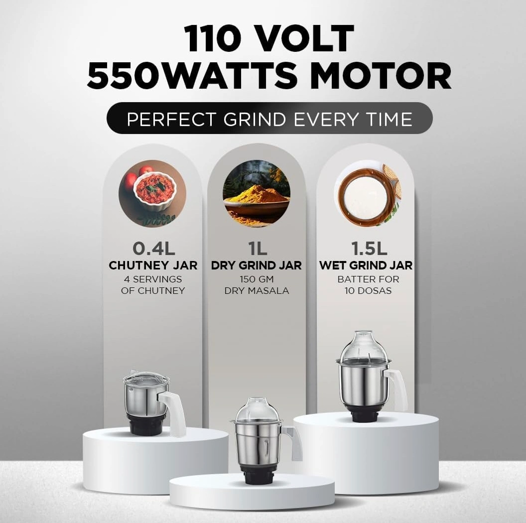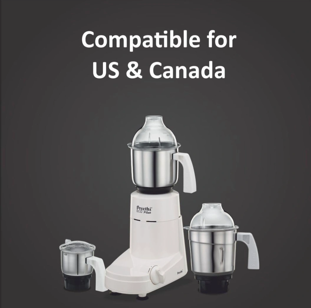 Selling a Preethi ECO Plus mixer grinder brandnew unpacked! It comes with three jars: a 0.4L chutney jar, a 1L dry grind jar, and a 1.5L wet grind jar. The motor is 550 watts and compatible for use in both the US and Canada. Perfect for grinding spices and making batters! same products sale in Amazon for 250 to 400. my price is just 140.