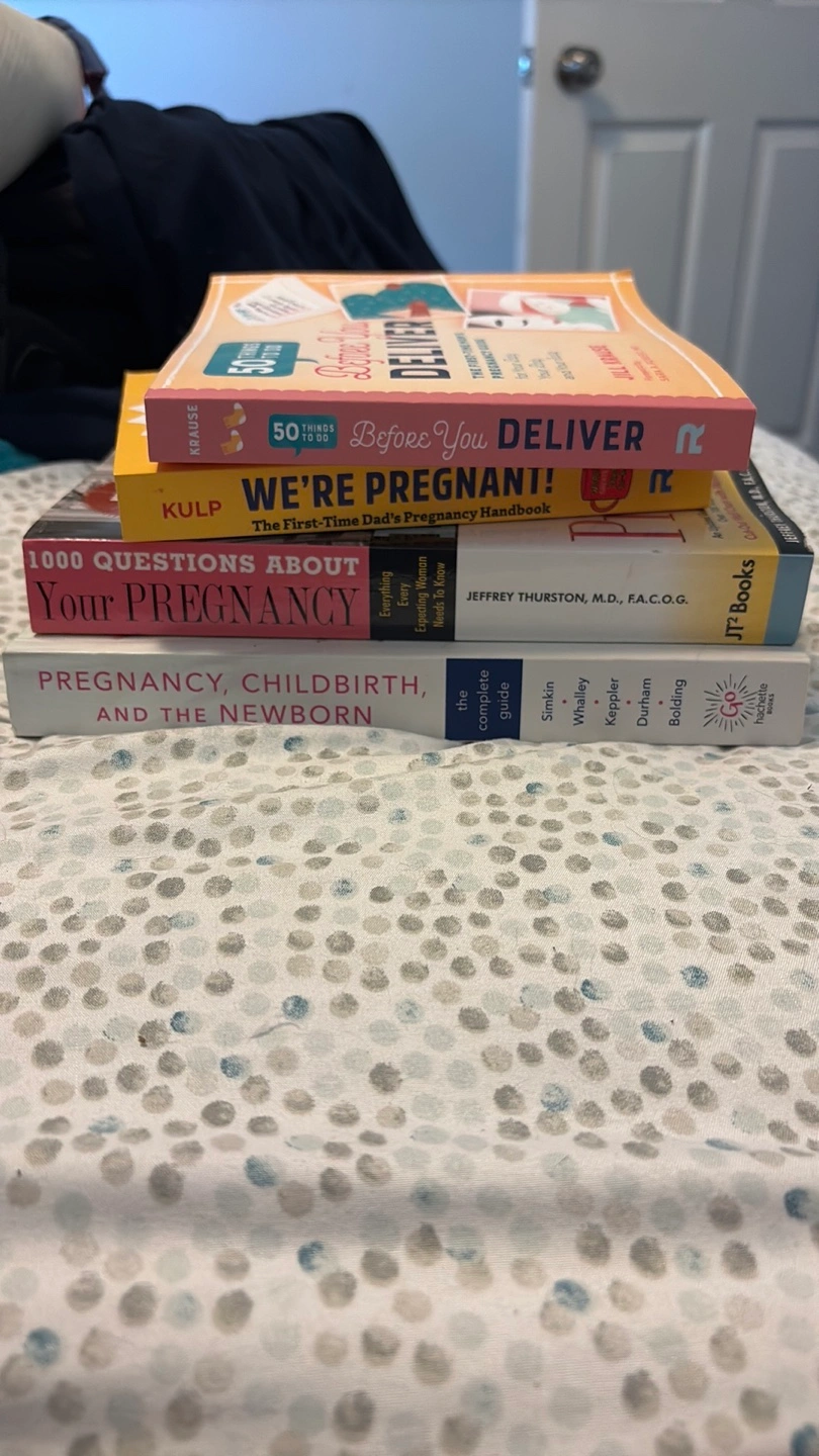 Selling a set of four books about pregnancy and childbirth. Includes: - 1000 Questions About Your Pregnancy by Jeffrey Thurston - Pregnancy, Childbirth and the Newborn: The Complete Guide by Penny Simkin, Janet Whalley, Ann Keppler, and Janelle Durham - 50 Things To Do Before You Deliver by Jill Krause - We're Pregnant! The First-Time Dad's Pregnancy Handbook by Adrian Kulp