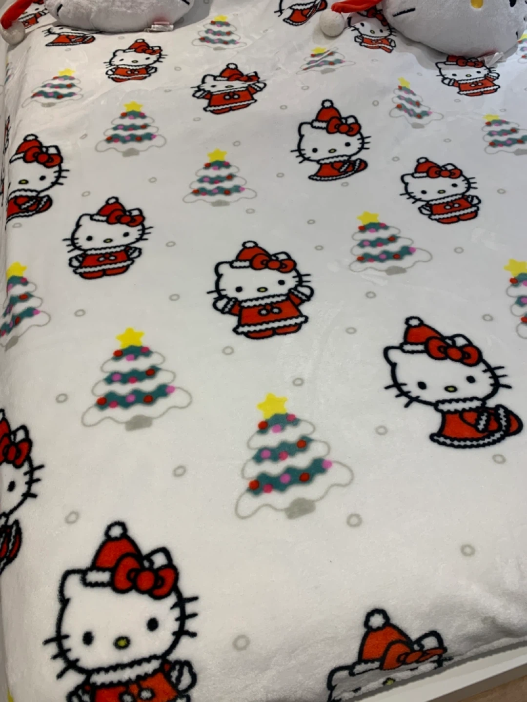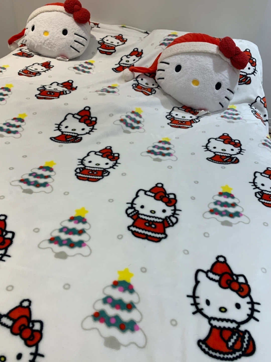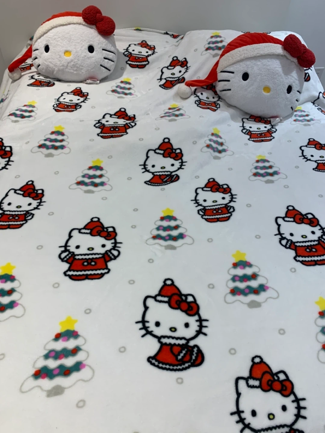 Snuggle up with this adorable Hello Kitty Christmas-themed blanket! It features Hello Kitty in a cute Christmas outfit, along with festive Christmas trees. Perfect for adding a touch of holiday cheer to any room!