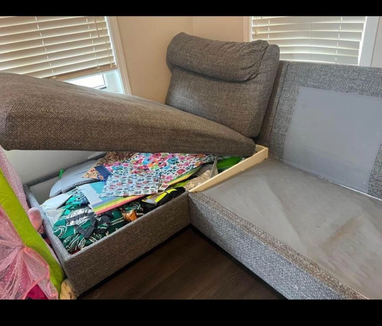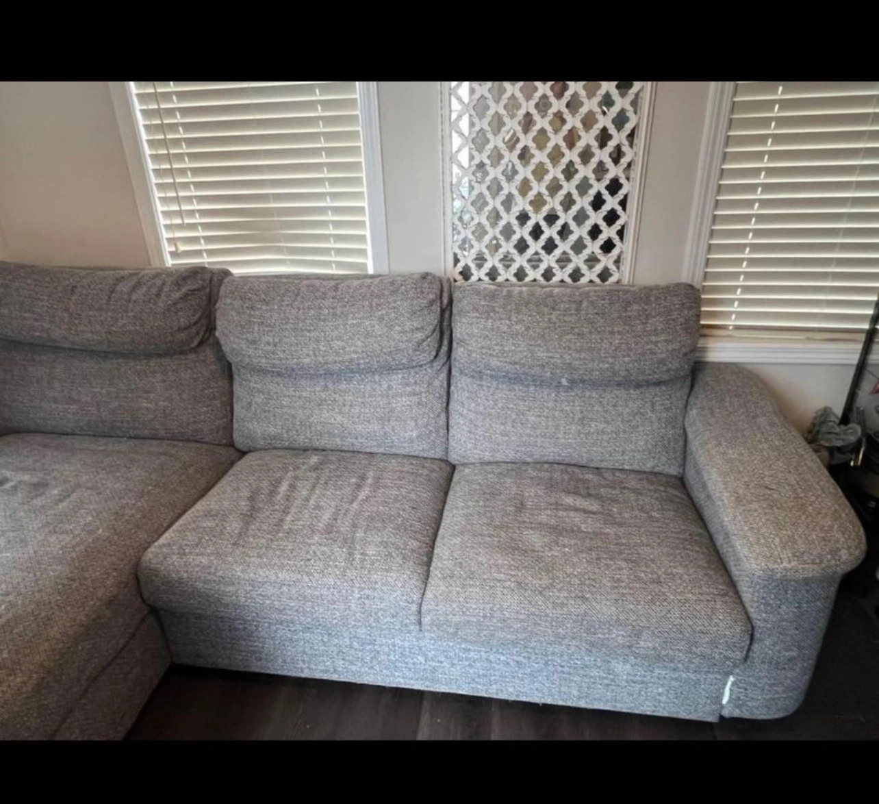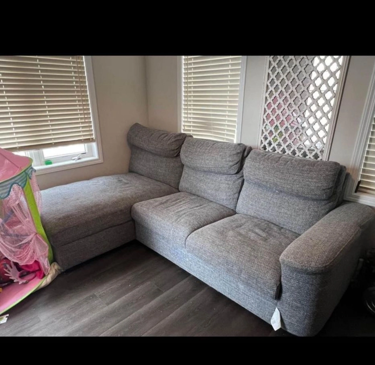 Preloved IKEA Grey Corner Sofa with Storage – a perfect blend of style and functionality. This sleek and modern sofa, adorned in chic grey upholstery, adds contemporary flair to any living space. Crafted with IKEA’s renowned quality, it promises both durability and sophistication. With its clever storage feature, it offers a practical solution for keeping your living area neat and organized. Whether you’re lounging solo or entertaining guests, this preloved sofa invites you to relax in style. Elevate your home’s ambiance with the irresistible allure of the Grey Corner Sofa with Storage from IKEA. dimension100"X63"X32" Bought for $1950.