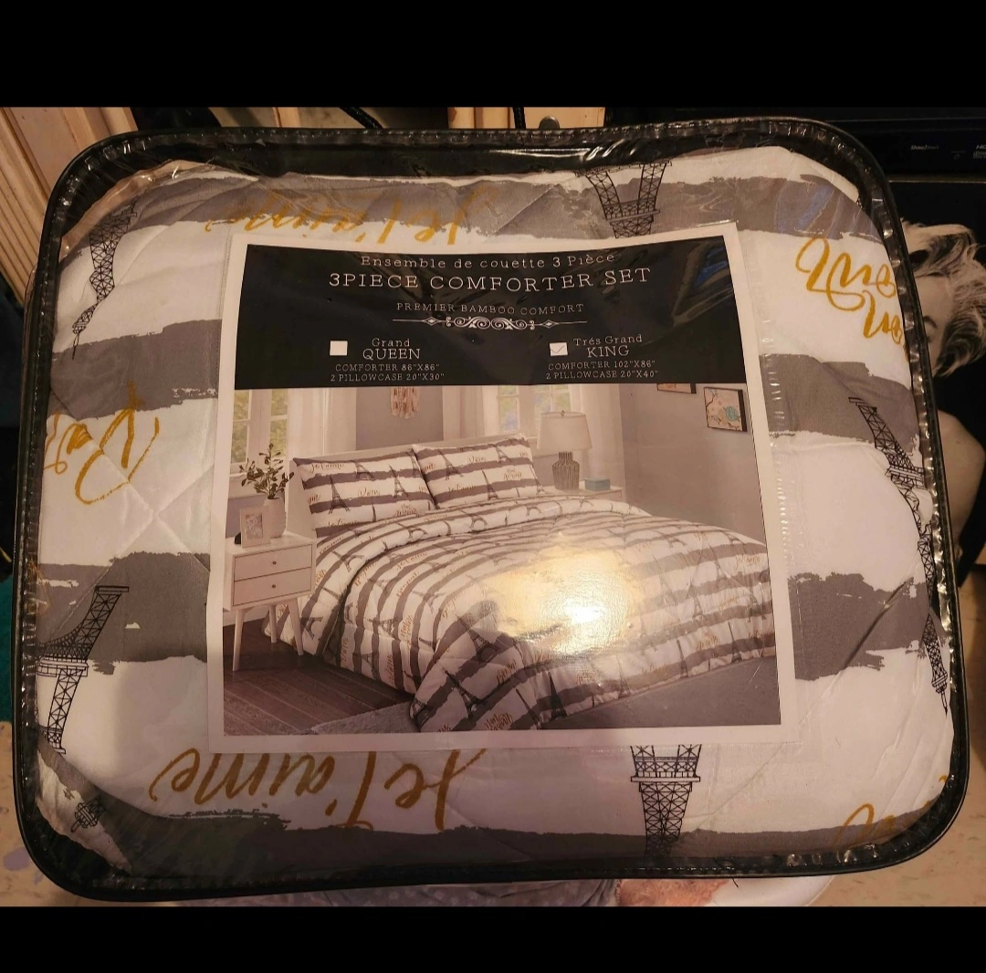 Selling a Premier Bamboo Comfort 3-piece comforter set in the Grand Queen size! The set includes a comforter (86" x 86") and two pillowcases (20" x 30")