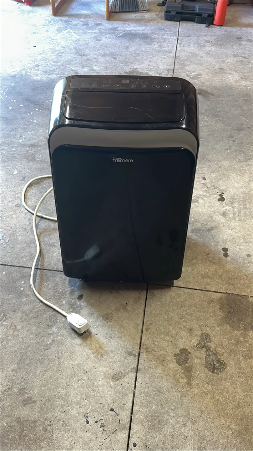 Selling a Premiere portable air conditioner. It's black and has a digital display on top. It comes with a power cord as seen in the pictures. It has some signs of use on the top of the unit.