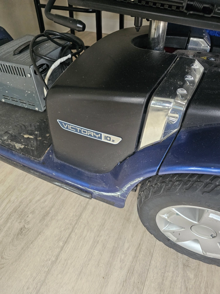 Selling a Pride Victory 10.2 mobility scooter! It's in good working condition and ready to help you get around. It features a comfortable seat, easy-to-use controls, and a sturdy design. Perfect for anyone needing assistance with mobility around town or at home