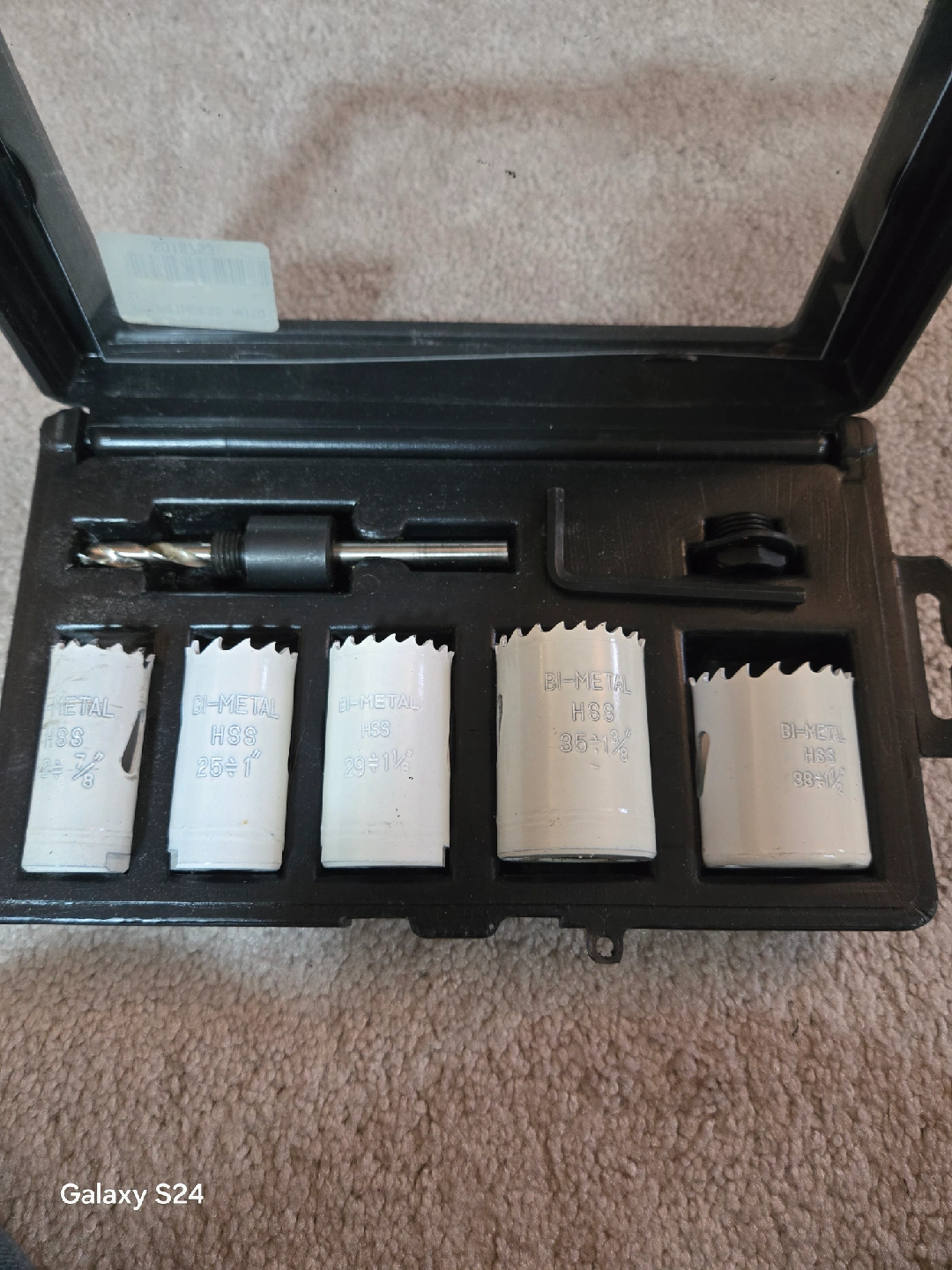 PICK UP ONLY Selling a Princess Auto Bi-Metal HSS hole saw set. Includes various sizes: 25/32", 25/1", 25/1 1/2", 35/1 1/8", and 38/1 1/2". Comes in a handy carrying case to keep everything organized. looks like the smaller one had been used.