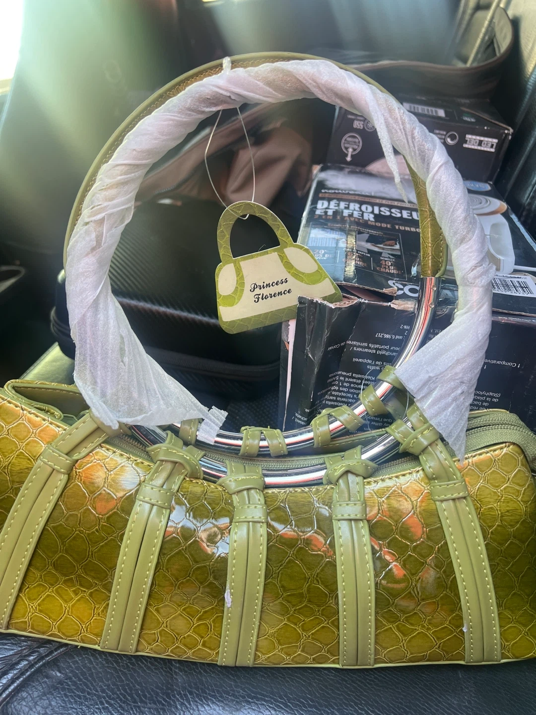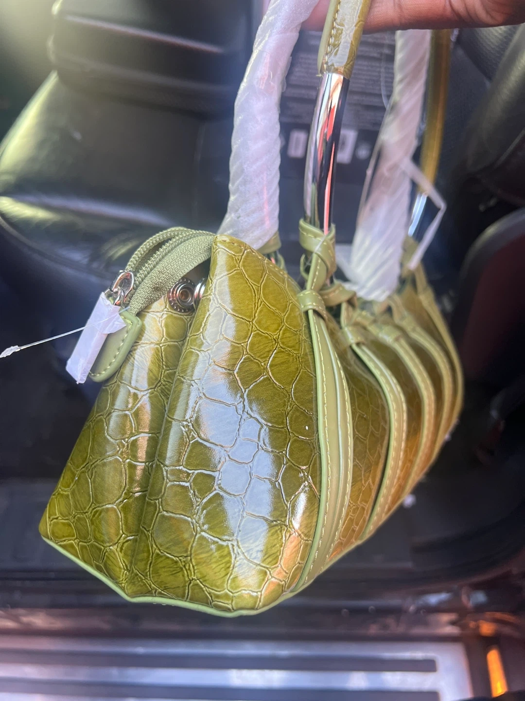 Selling a Princess Florence handbag in a lovely green croc pattern! It's in excellent condition, still with the original tag and wrapping on the handle. The unique design and colour make it a stylish accessory for any outfit