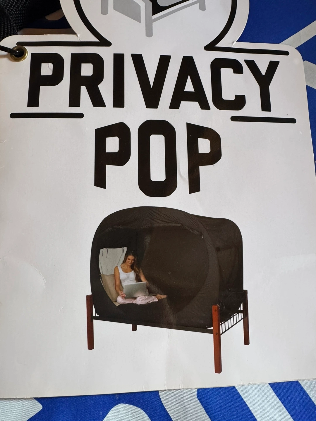Selling a Privacy Pop bed tent! It's great for creating a private space in shared rooms or just for a cozy night's sleep. It's in New condition and comes in its original packaging for easy storage and transport.