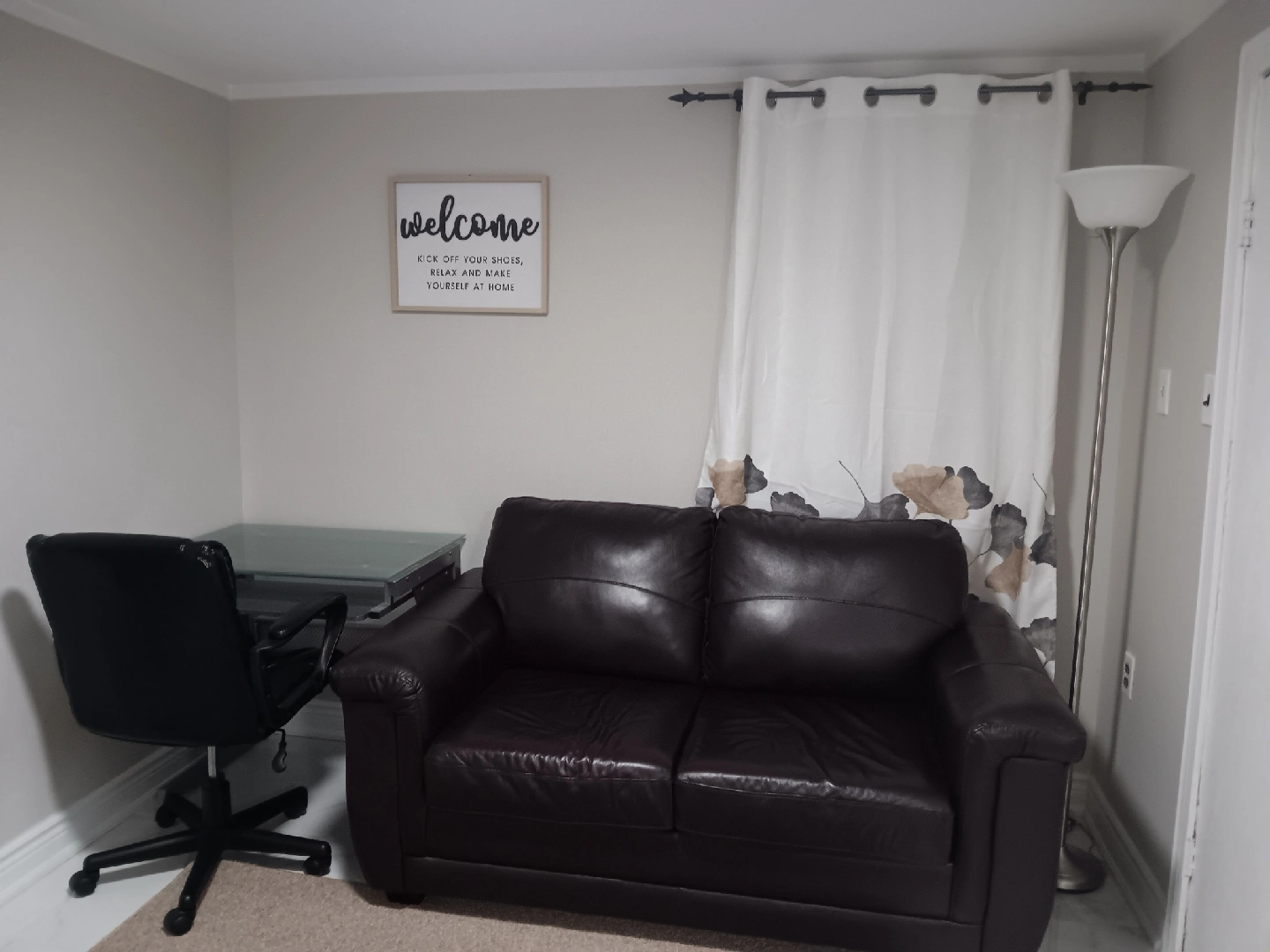 Cozy private suite in my home, located in the basement with its own separate entrance, bedroom, living room, kitchen, and bathroom. Guests also have access to free on-site parking. Conveniently close to Pearson Airport (10-15 min), Humber College, local shops, restaurants, and parks. The space is clean, comfortable, and thoughtfully equipped for short or longer visits, making it ideal for travelers, students, or anyone exploring Toronto.