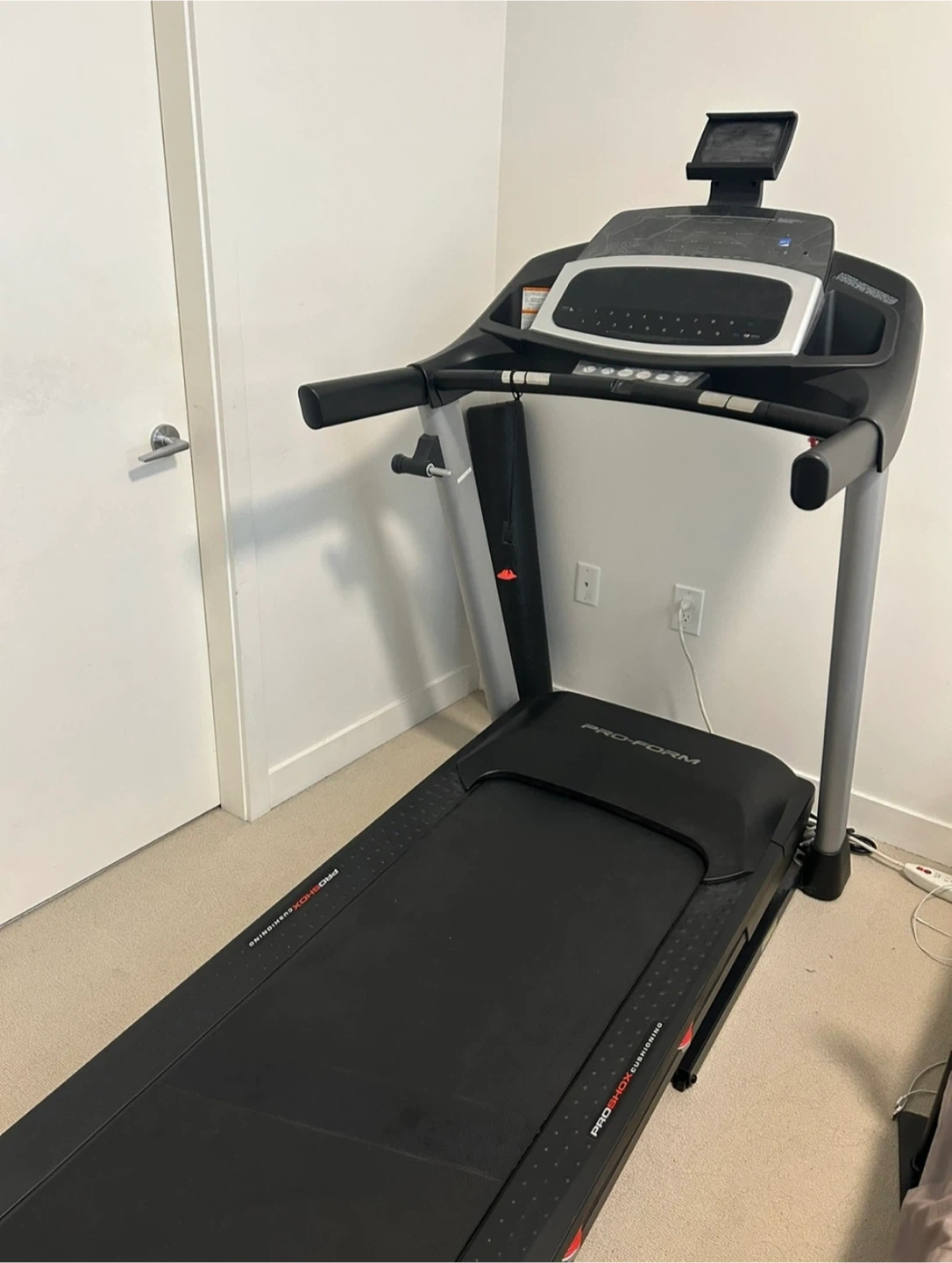 Selling a Pro-Form treadmill in very good condition. It's a great way to stay active at home, especially during the colder months. This treadmill has various speed and incline settings to customize your workout. It also has a display to track your progress. Perfect for anyone looking to add a convenient exercise option to their home!