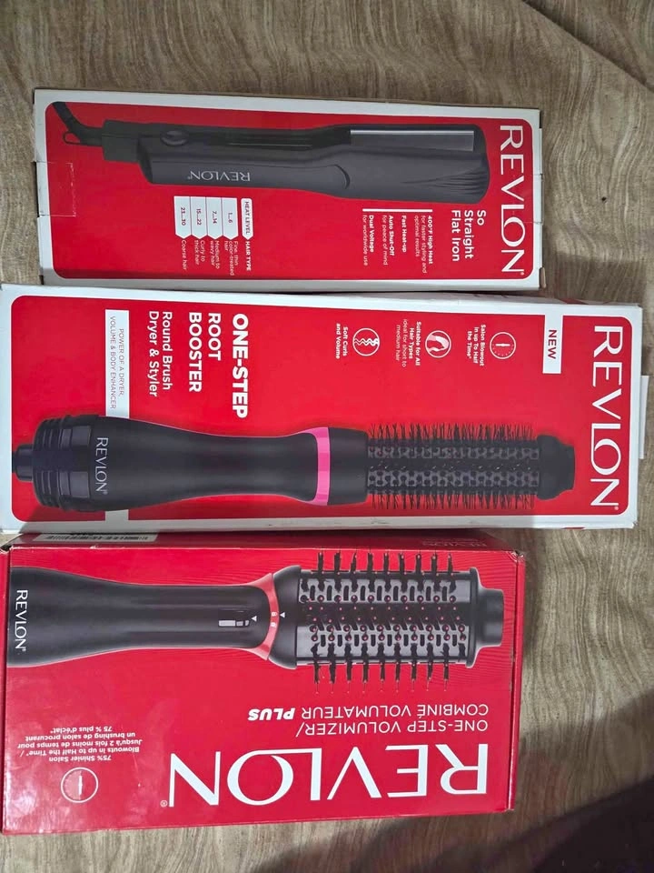 Revlon Hair Styling Tools Bundle ๐ฅ Get the whole set for $65OR buy individually for $25 each! ๐ฅ Includes: 1. Revlon So Straight Flat Iron ๐ 2. Revlon One-Step Root Booster Round Brush Dyer & Styler ๐โโ๏ธ 3. Revlon One-Step Volumizer/Combiner ๐ฅ Description: Perfect for achieving salon-quality styles at home! ๐โโ ๏ธ These Revlon tools help with straightening, volumizing, and styling your hair with ease. Ideal for professionals and at-home stylists looking to elevate their toolkit! Pickup Details: ๐ Located in Hamilton Mountain (near Mohawk College). Happy to discuss pickup details! Interested? Let me know!