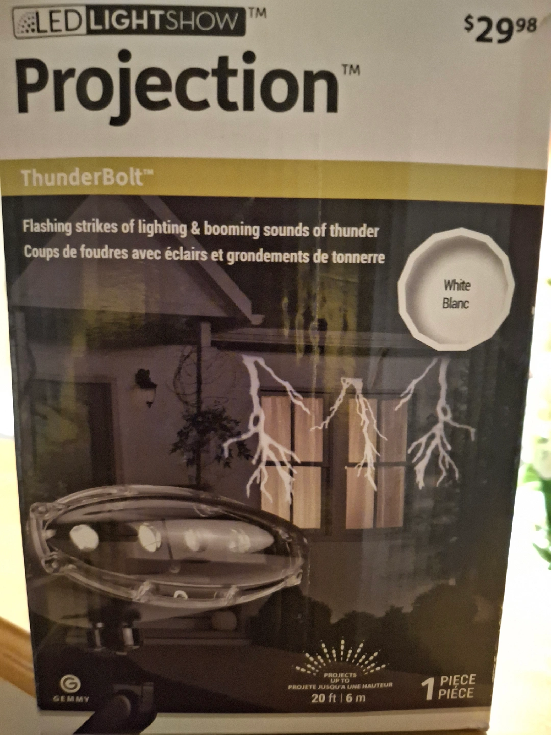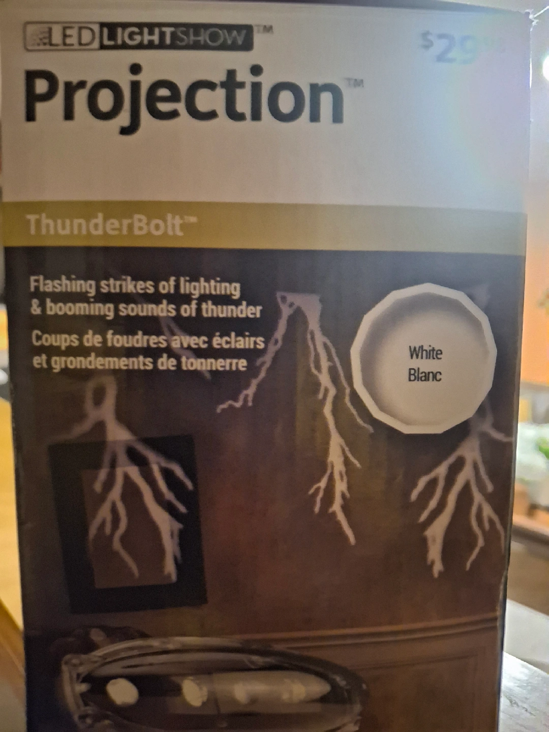 Add some flash to your home with this Projection Thunderbolt LED Lightshow! It projects flashing strikes of lightning and booming sounds of thunder. It's designed for indoor and outdoor use. Originally bought for $29.98