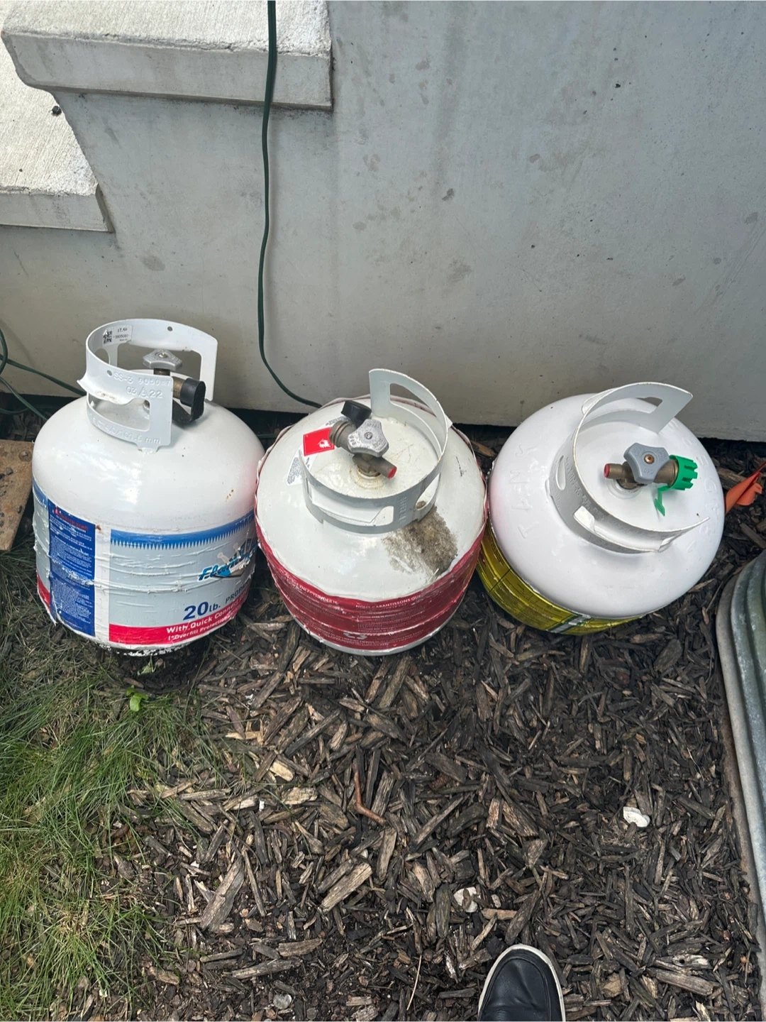 This arevused propane tanks - 3/ perfect for your BBQ campers, heaters, or outdoor needs. Valves and hookups perfect condition It's a standard 20 lb tank, ready to be filled and used. Price for 3 tanks $60 EACH $20 - bargain If the ad is up, it's available