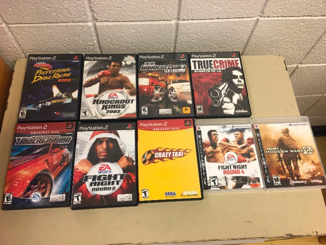Selling these games; For PS2 Professional Drag Racing Need for Speed Underground Crazy Taxi Midnight Club 3 TrueCrime, Streets of LA Knockout Kings Fight Night Round 2 For PS3 Fight Night Round 4 Call of Duty Modern Warfare 2 $80 for everything Xbox Sony Games For Sale By: Owner