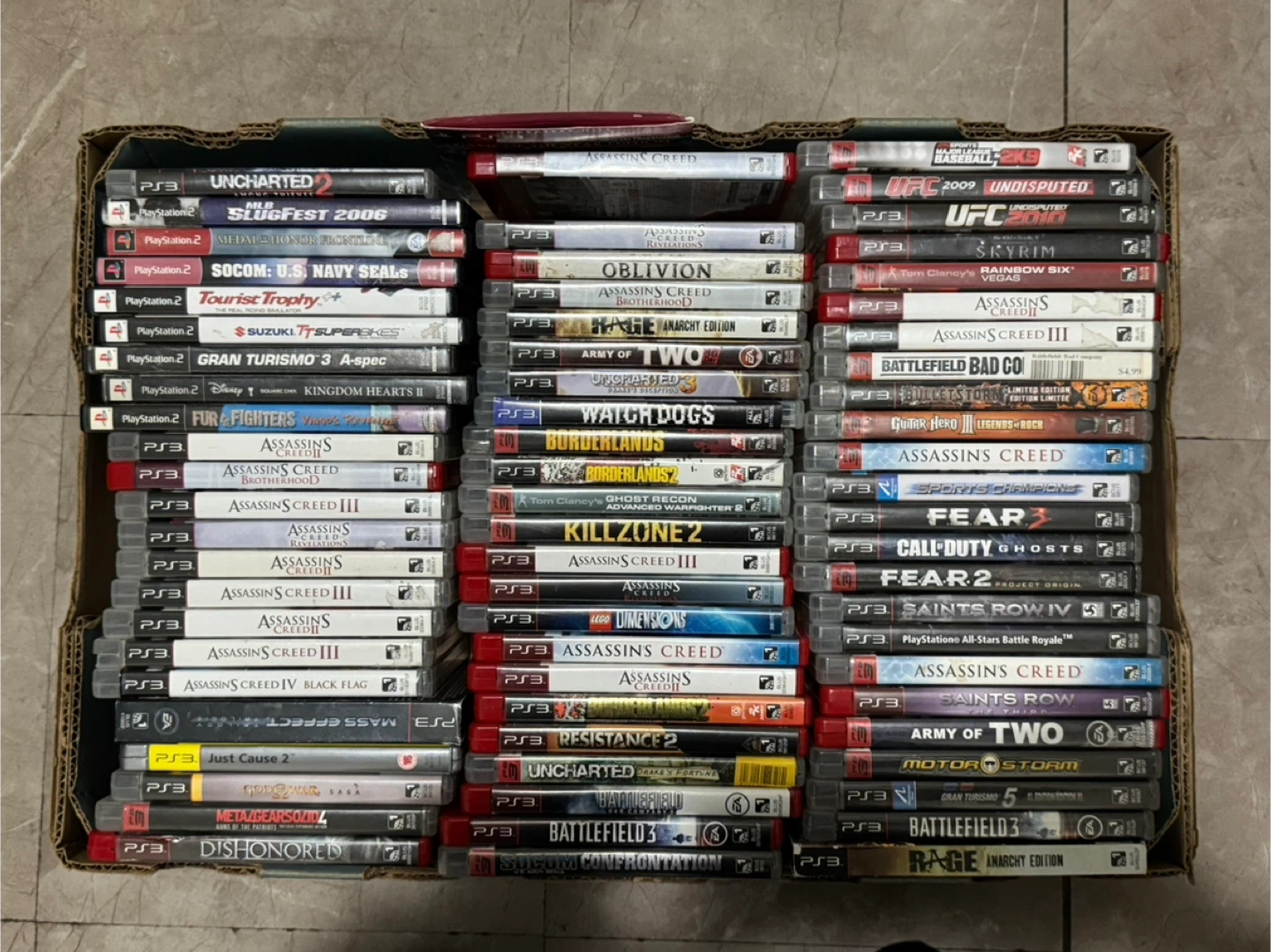 Selling a massive collection of PlayStation 2 and PlayStation 3 games! There's a wide variety of titles, from racing and sports to action and adventure. Perfect for a collector or someone looking to build their game library. Check out the photos for all the titles included!$5 each will give you deal if you buy a lot.