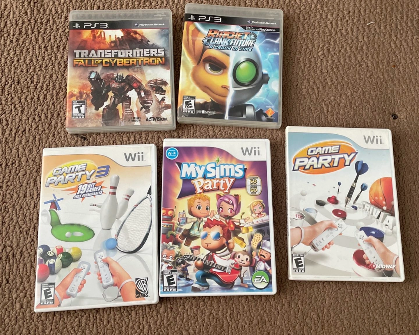If buying separately : Transformers Fall of Cybertron - Sold Ratchet and Clank A Crack In Time -Sold MySims Party - 10$ Game Party - 10$ Game Party 3 - 15$