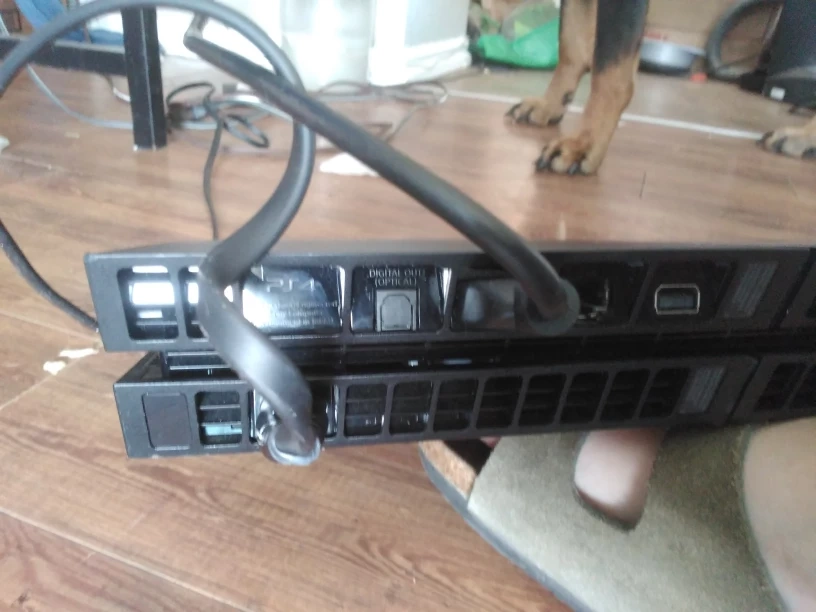 PlayStation 4 console with all cords. it comes with a red controller controller is kind of beat up but it still works great