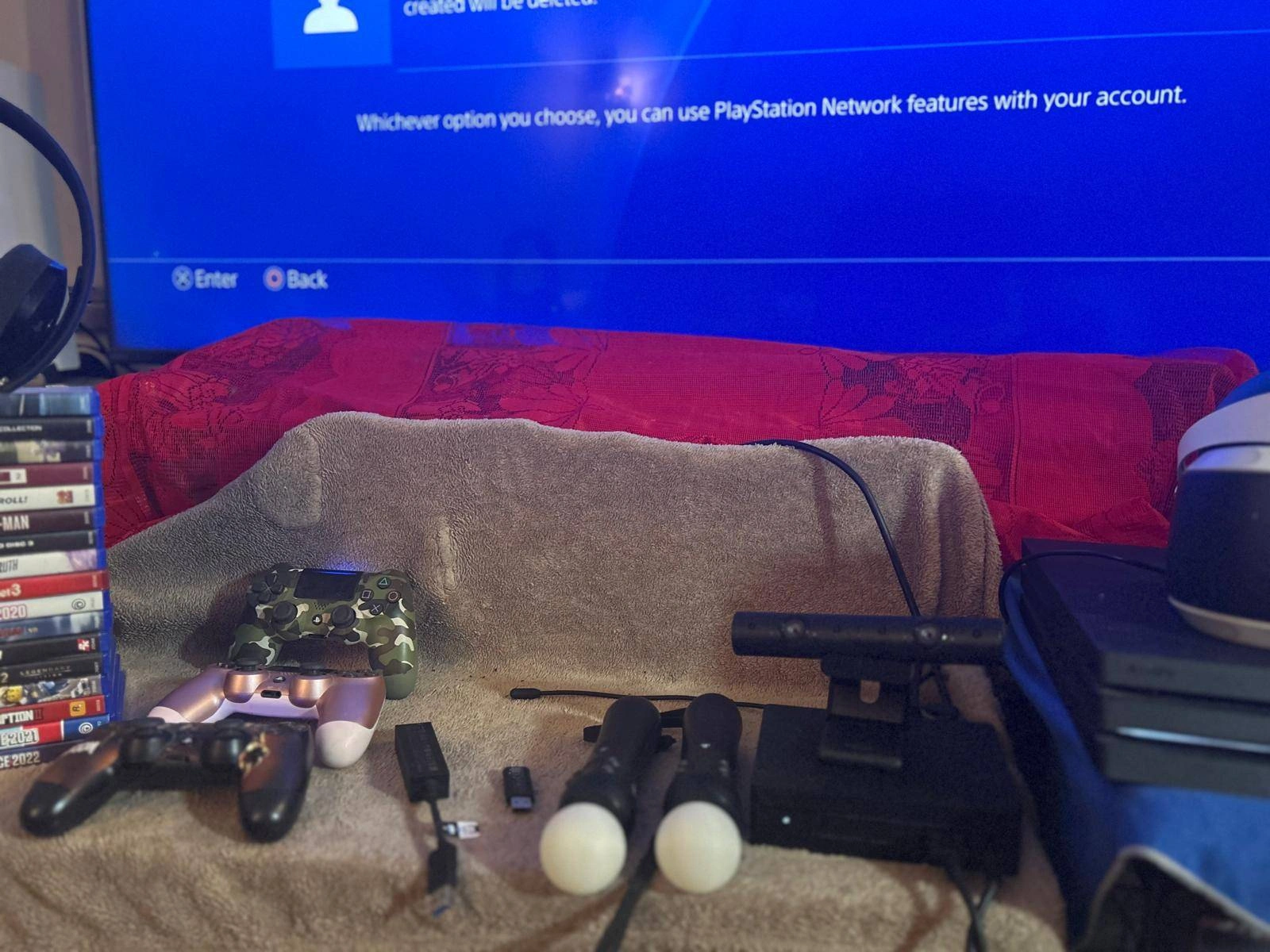 🎮 PS4 Full Combo – Ready to Play NOW 🎮 Selling my PS4 1TB in excellent condition (barely used, always well taken care of). I was planning to keep it forever, but I just don’t have the time to play—so I’d rather sell it to someone who’ll enjoy it 🚀. ✨ Bundle Includes: PS4 1TB Full VR Set (with camera + PS5 adapter) 3 PS4 controllers 2 Motion S controllers Sony wireless headset 🎧 17 great games: Little Big Planet 3, Blood and Truth, PlayStation VR, Paw Patrol, Spider-Man, Hitman 2, Sponge Bob Battle for Bikini Bottom, Doom Slayers Collection, God of War, Just Dance 2020-21-22, WWE 2K20, Injustice 2, Lego City Undercover, Iron Man VR ✅ Everything works perfectly ✅ No scratches, no damage, system updated ✅ Controllers fully charged & ready to go 🔋 🔥 Plug in & start playing right away! 🔥 *********************************** Hablo Español ****************************************************** 🎮 Combo PS4 Full 🎮 Vendo mi PS4 de 1TB en excelente estado (casi no la usé, siempre bien cuidada). La iba a guardar “para siempre” pero no tengo tiempo de jugar, así que prefiero que alguien más la disfrute 🚀. 👉 Incluye todo esto: PS4 de 1TB Set VR completo (con cámara + adaptador para PS5) 3 controles originales de PS4 2 controles de movimiento (Motion S) Audífonos inalámbricos Sony 🎧 17 juegazos: Little Big Planet 3, Blood and Truth, PlayStation VR, Paw Patrol on a Roll, Spider Man, Hitman 2, Sponge Bob Battle for Bikini Bottom, Doom Slayers Collection, God of War, Just Dance 2020-21-22, WWE 2K20, Injustice 2, Lego City Undercover, Iron Man VR ✅ Todo en perfectas condiciones, sin rayones, sin daños. La consola está actualizada y lista para usar. ✅ Controles funcionando y cargados 🔋. Listo para conectar y empezar a jugar al instante 🎮🔥
