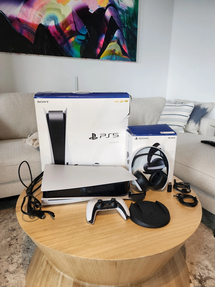 This is the original PS5 (Disc version), and it is in perfect condition. I used it only a little as I mostly played on PC and recently upgraded to the PS5 Pro. It comes with all original accessories and cords. I'm also throwing in my Pulse 3D Wireless Headset to go with it. * If you have any further questions please don't hesitate to ask.