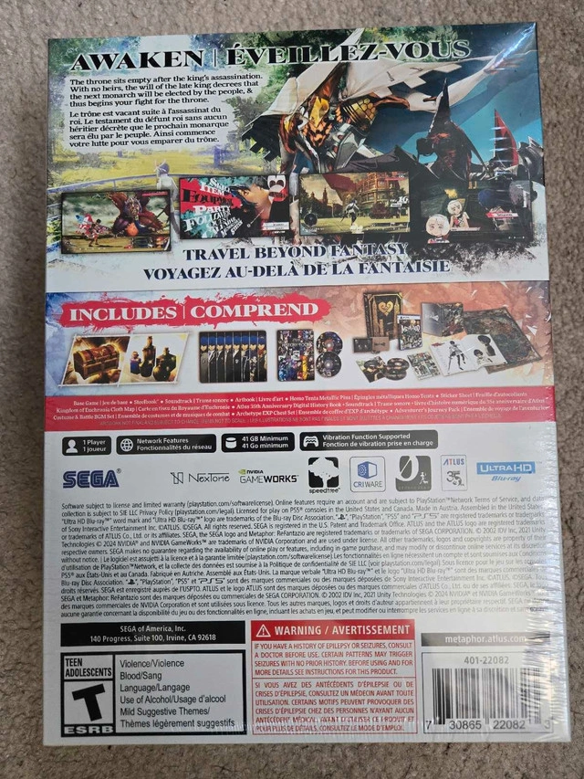 Sealed copy of Metaphor: ReFantazio Collector's Edition for the Ps5. Package has not been opened. Pick up near Yonge and Finch only.