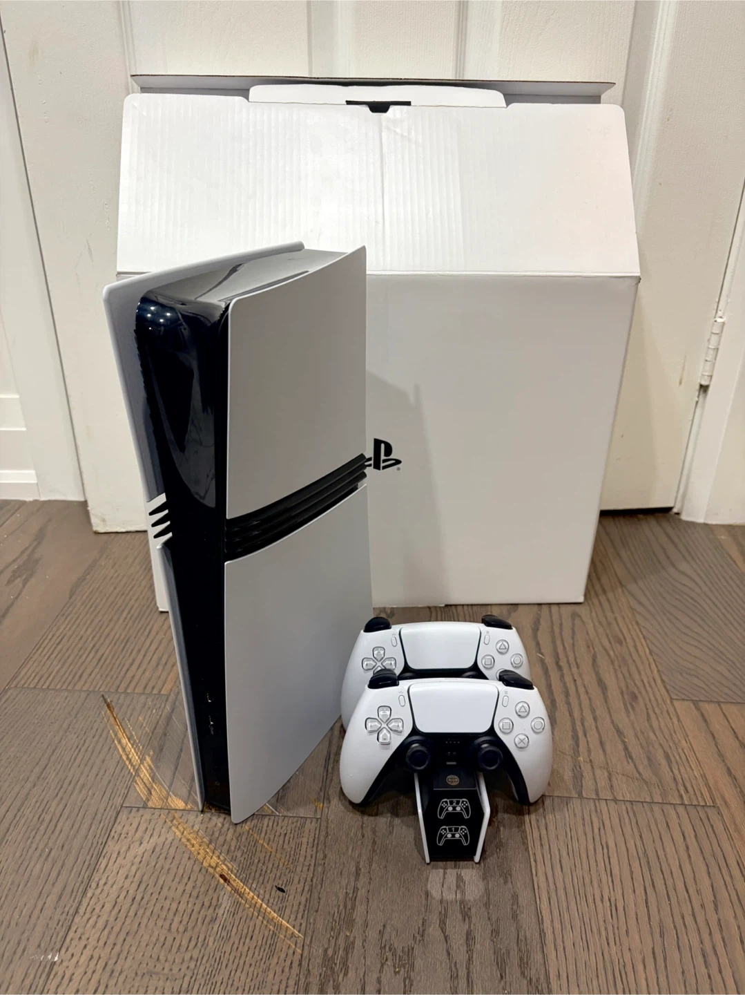Ps5 pro in good working condition. Comes with needed cables. Can sell separately so see prices below Ps5 with one controller-$840 Ps5 with 2 controllers and charging dock-$950 Prices are FIRM. Prices are NON NEGOTIABLE. Serious buyers only, do not waste my time. Anyone who didn’t read the description will be ignored