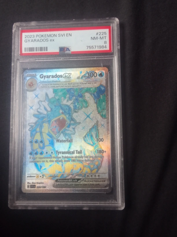 Selling a 2023 Pokemon SVI EN Gyarados ex card. It's graded PSA 8.