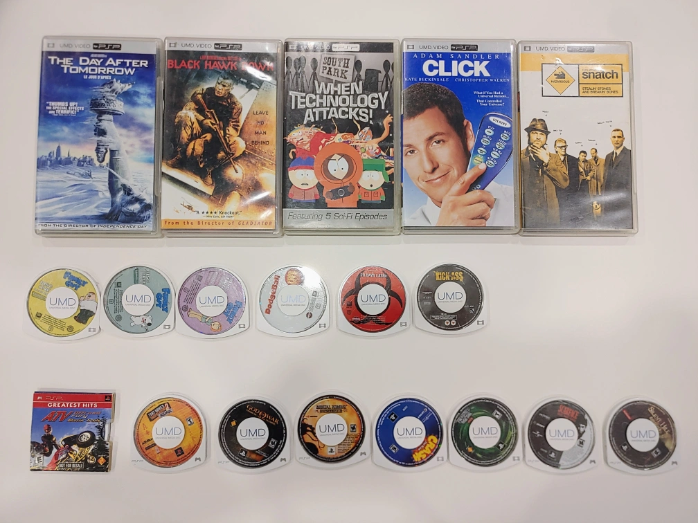 Don't ask if it's available. If the ad is up it is. All prices are below in the description. All movies and games have been tested and work perfectly. The prices are firm. Cash only. No trades. Pick up in Maple (Dufferin & Rutherford) UMD Movies Day After Tomorrow - $10 **SOLD** Black Hawk Down - $5 **SOLD** Click - $10 **SOLD** Snatch - $15 **SOLD** South Park when technology attacks - $40 Family Guy "Season 1 & 2" - $15 Dodge ball - $5 Kick Ass - $10 28 days later - $25 GAMES ATV off-road fury - $5 Tony hawk's underground 2 Remix - $30 God of War Chains of Olympus - $30 Mortal Combat Unchained - $15 Crash tag team racing - $15 Twisted metal head-on - $10 Scarface game - $20 Silent Hill Origins - $45 (SOLD)