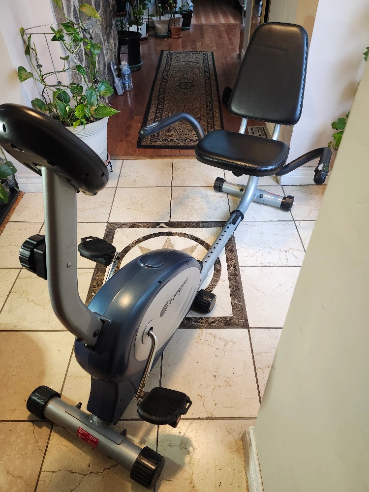 Selling a PT Fitness recumbent exercise bike! It's in great shape and ready for a new home gym. Perfect for getting your cardio in without putting stress on your joints. It has a comfortable seat and easy-to-read display to track your progress