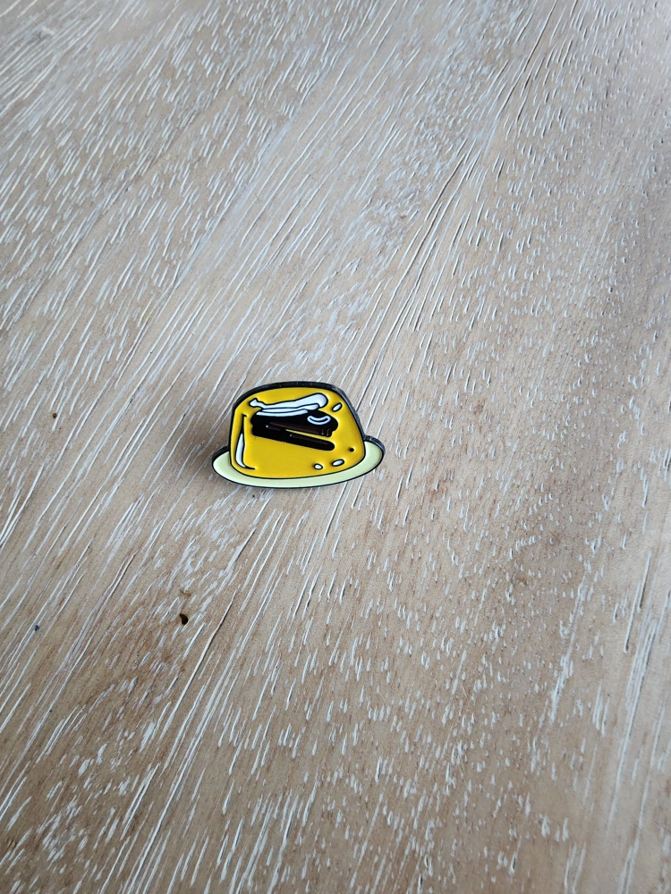 This is a cute pudding enamel pin! It's a fun little accessory to add to your jacket, bag, or pin collection! It's in great condition and ready for a new home