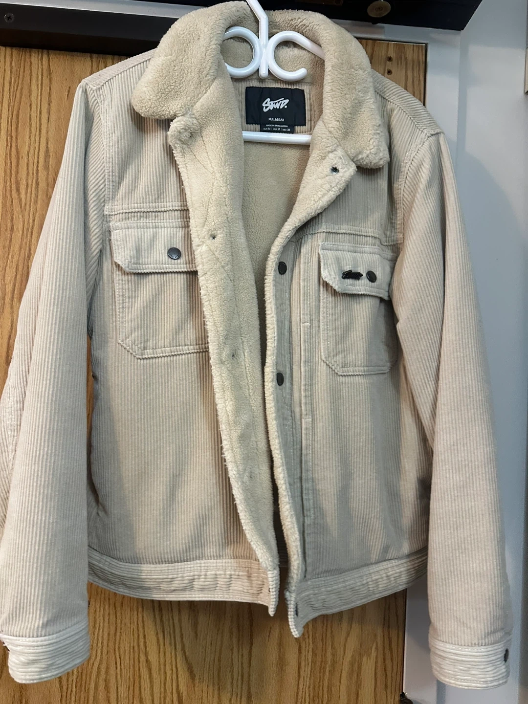 Cozy up in this Pull&Bear corduroy jacket! It features a soft sherpa lining and collar to keep you warm. The jacket is a size medium and in great condition. Perfect for layering during the colder months!