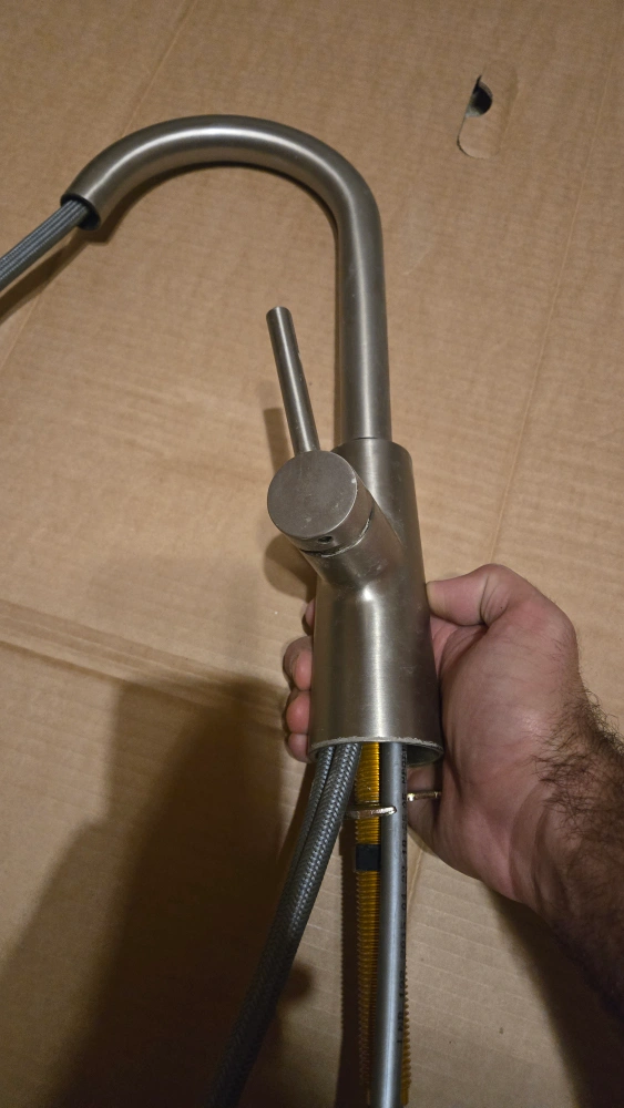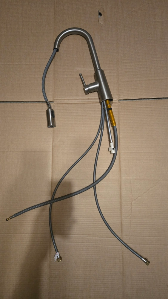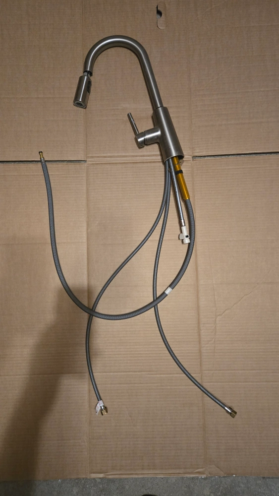 Selling a used pull-down kitchen faucet. It has a stainless brushed nickel finish and is in good working condition. Perfect for upgrading your kitchen sink!