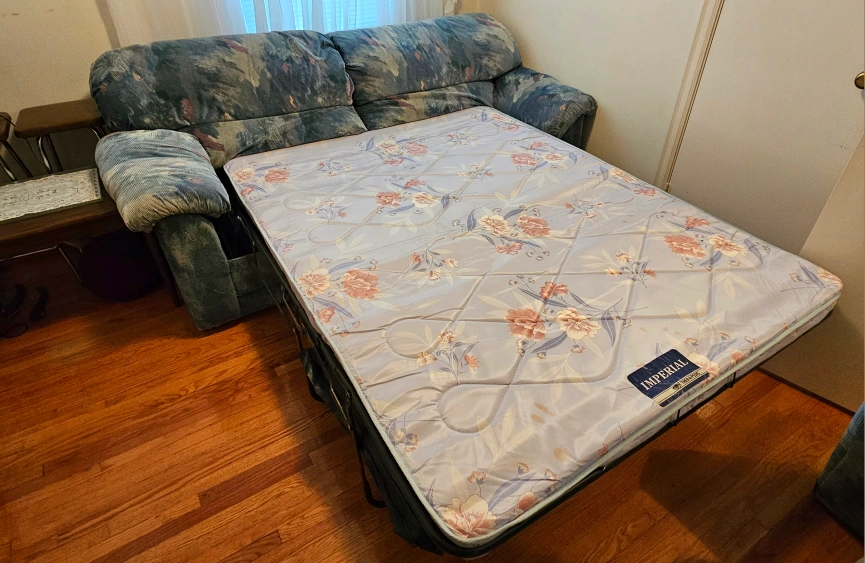This is a sofa with a pull-out bed, perfect for guests or small spaces. The sofa is in a good used condition. It features a comfortable mattress and a sturdy frame. This item is ideal for anyone needing extra sleeping space without sacrificing living room. You are responsible for the pick-up, delivery is not offered. Pick-up location: Scarborough, Dorset Park, near Kennedy Rd and Ellesmere Rd intersection, near 401 highway.