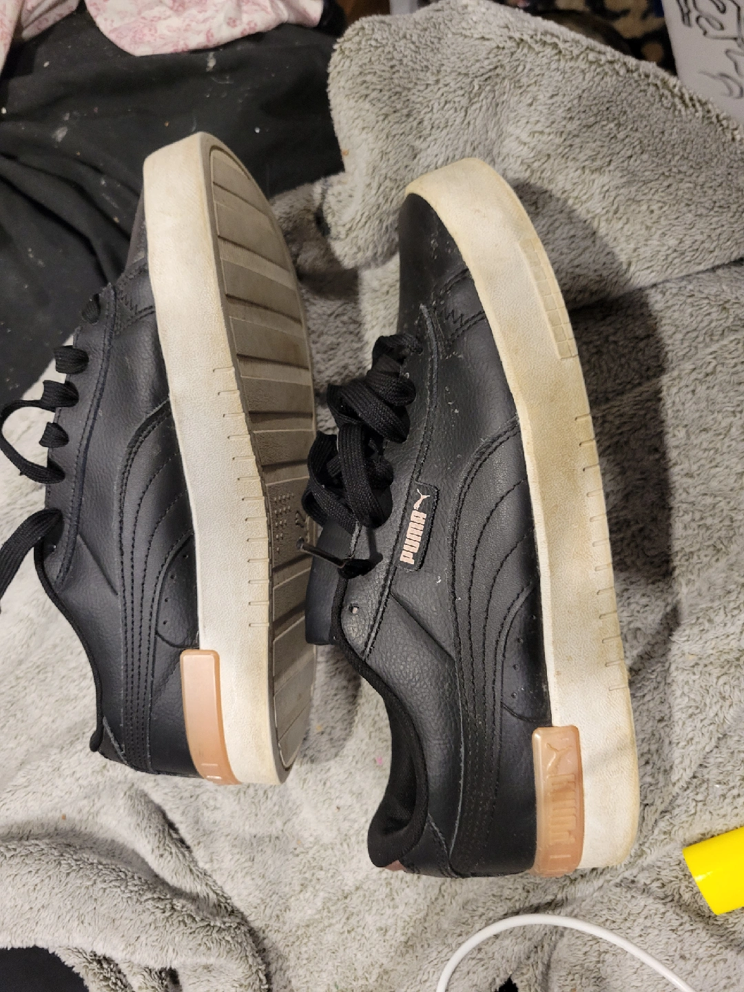 Selling a pair of Puma black leather sneakers! They have a stylish design and are in good condition, ready for a new home. Perfect for everyday wear!